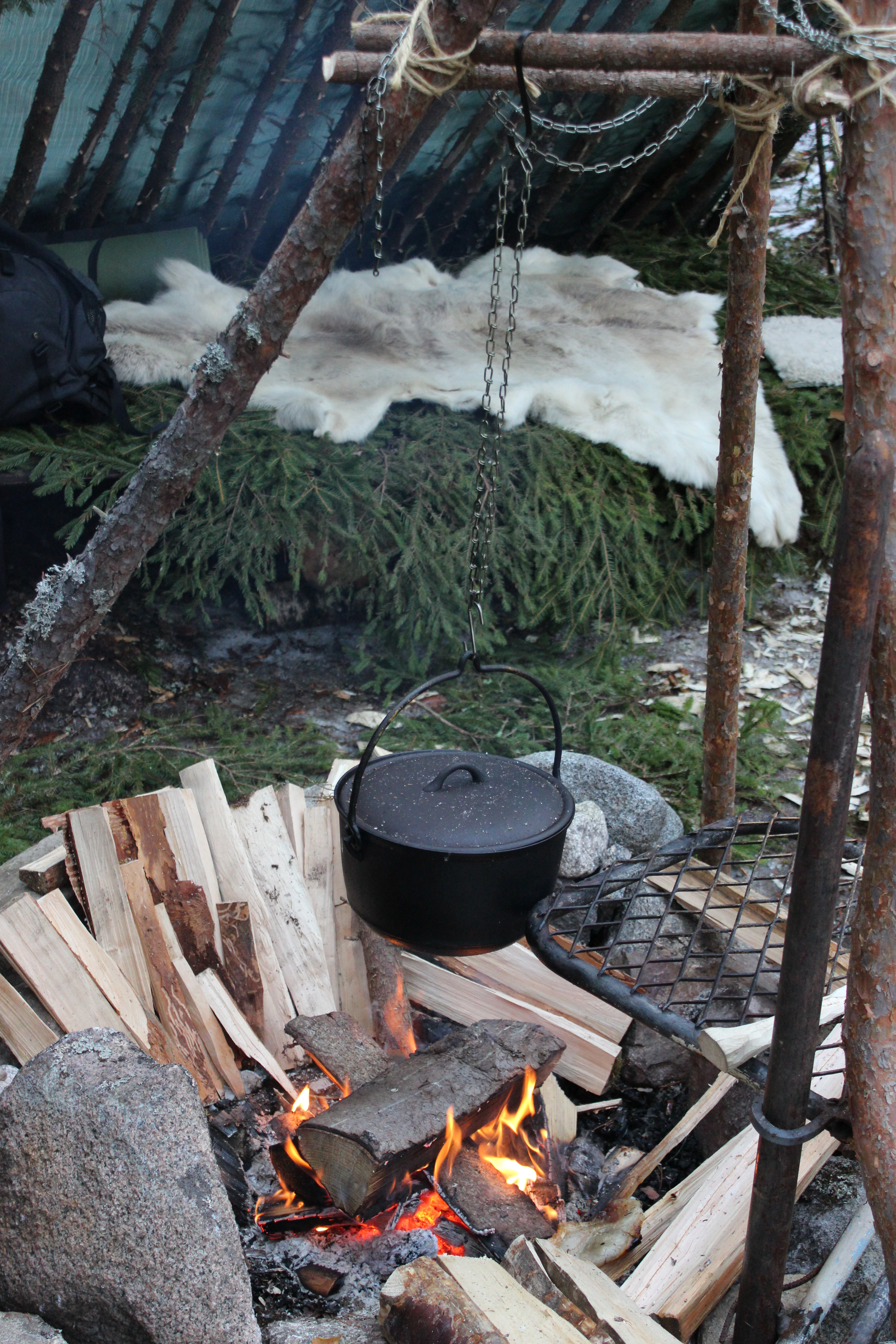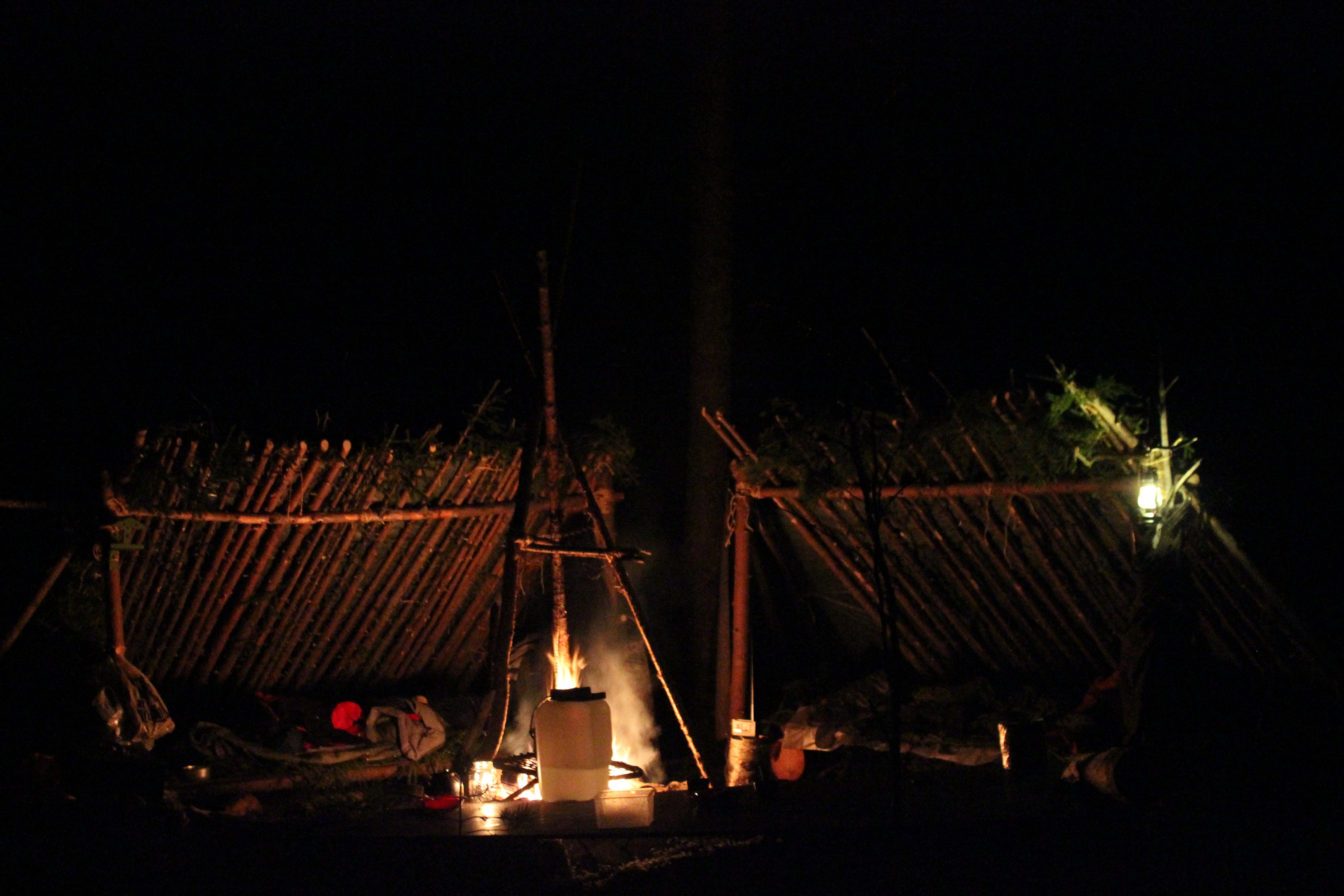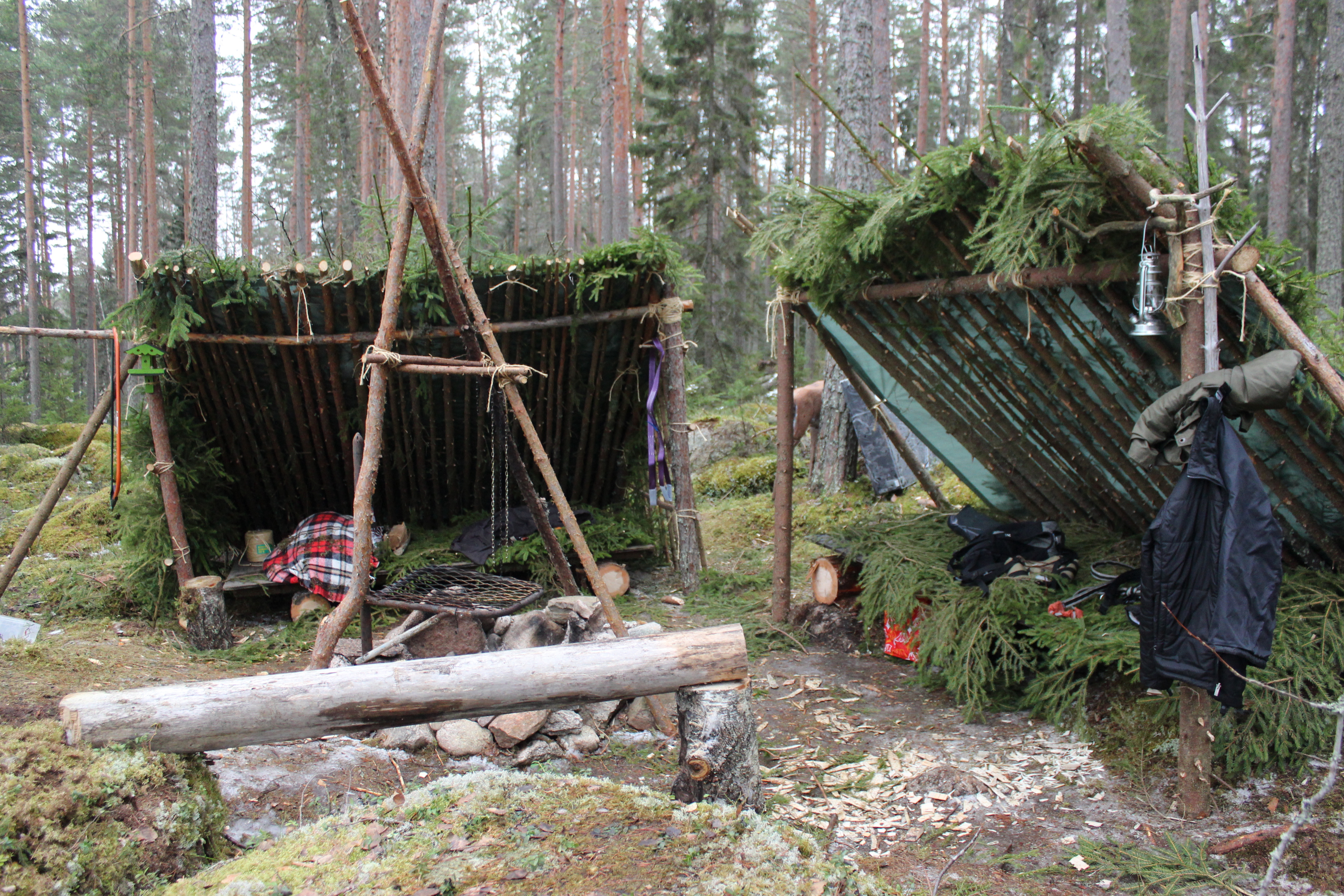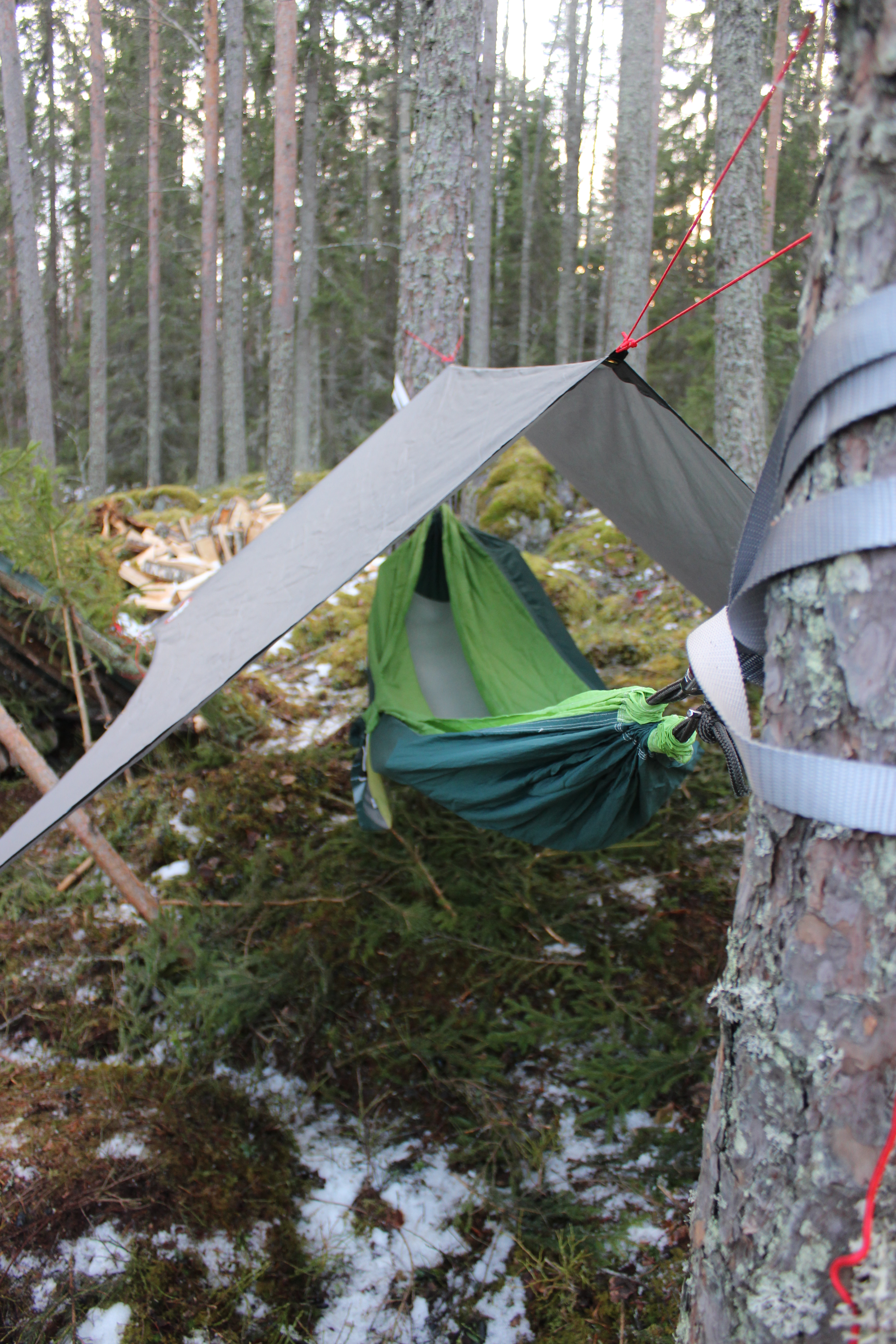 Laavujen rakentelun päätteeksi olimme yötä metsässä. Itse kokeilin riippukeinussa yöpymistä ensimmäistä kertaa ja sehän oli varsin mukavaa! Tähtitaivas kattona ja Päijänteen ulvovat jäät tuudittivat uneen. Aamulla oli mitä mahtavin auringonnousu!