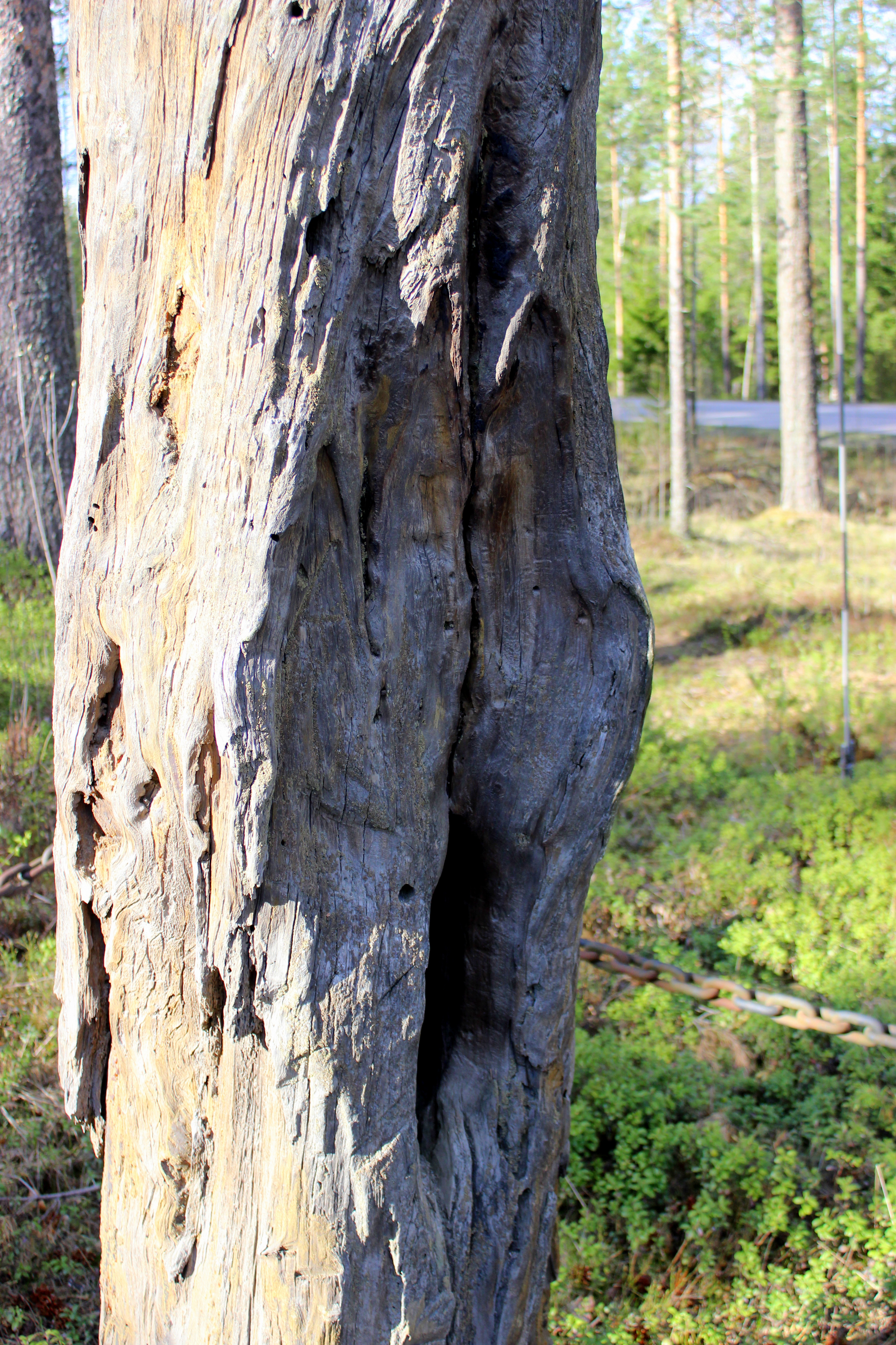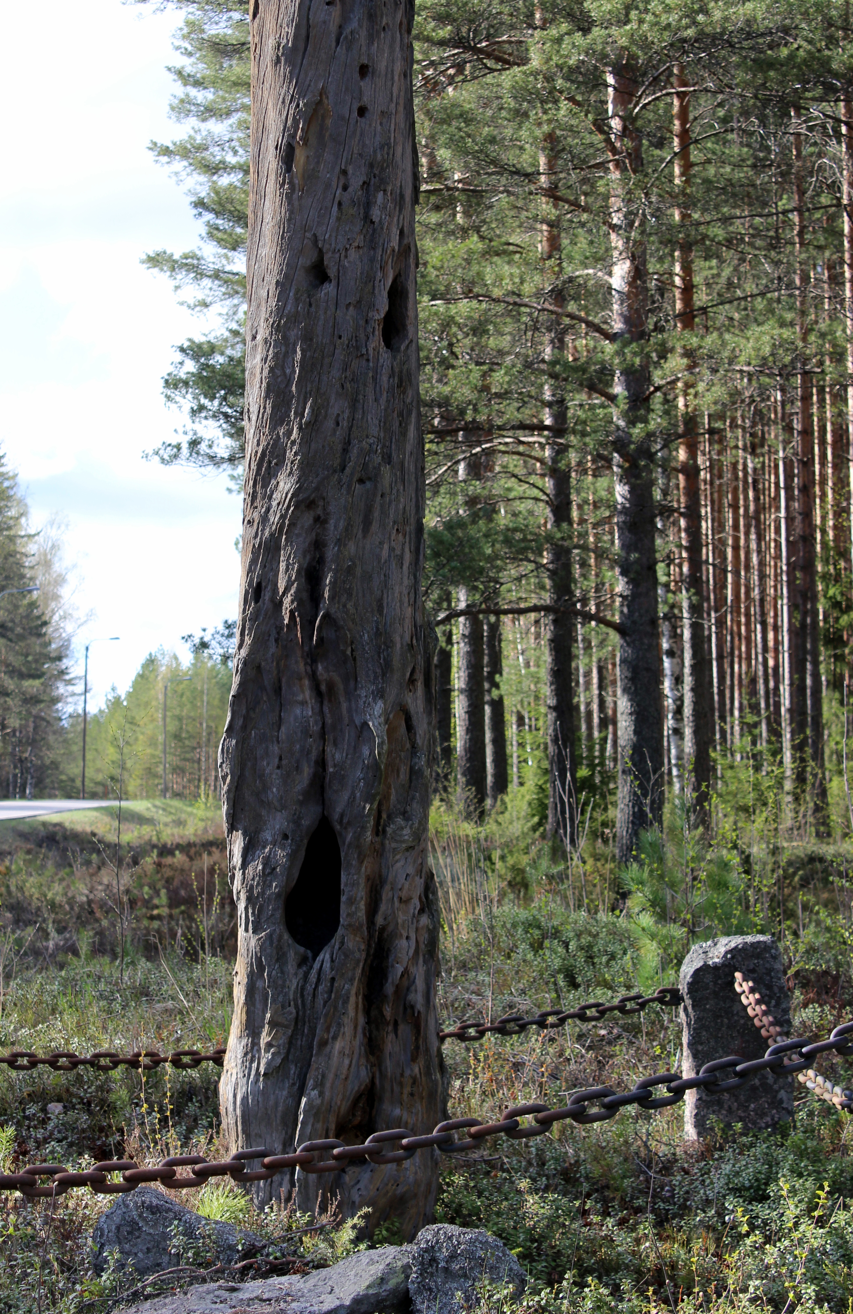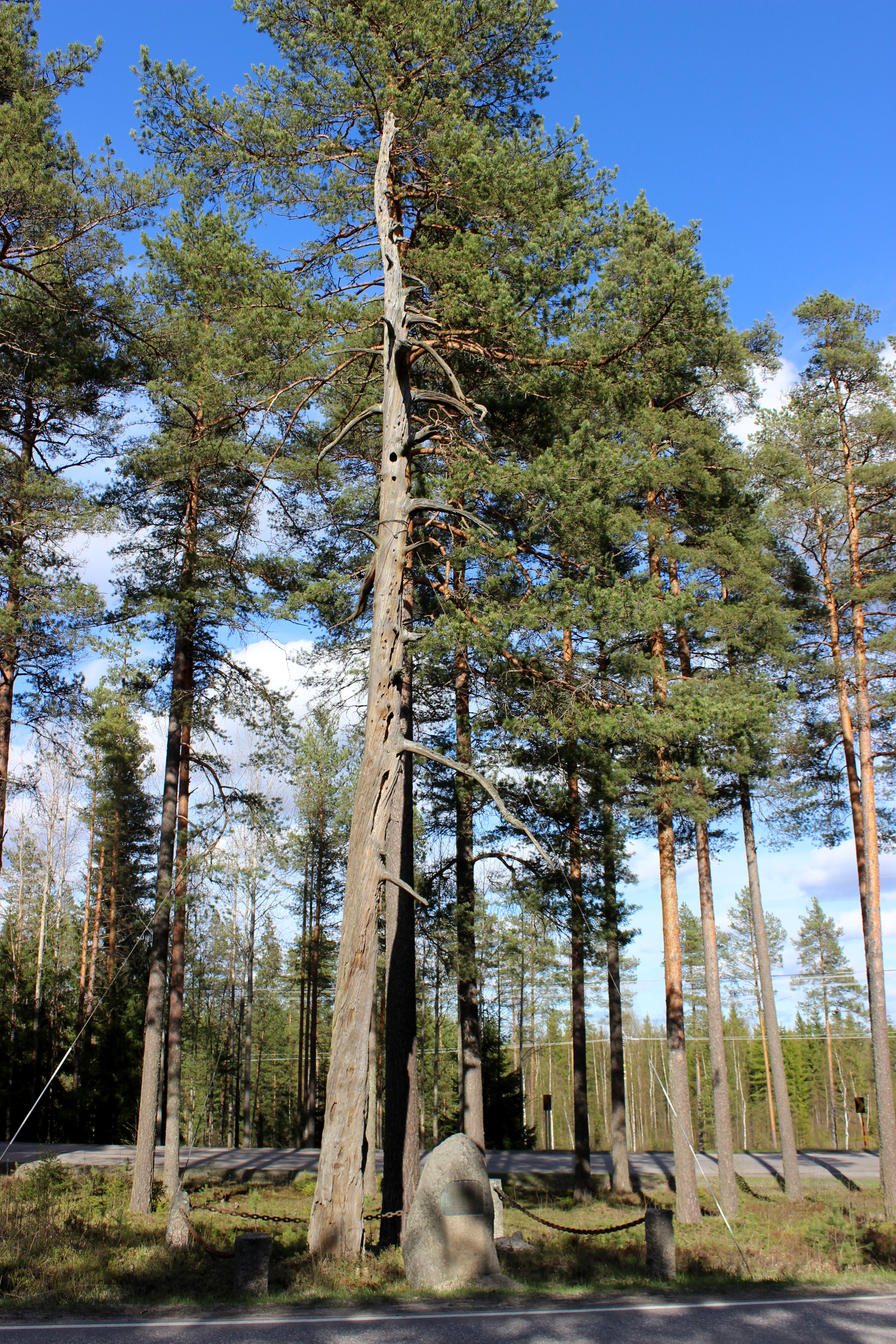 Jämsänkosken ja Jämsän rajalla seisoo erikoinen puu, joka kätkee sisälleen paljon historiaa ja salaisuuksia. Se on todistanut monenmoisia tapahtumia, joten sille on suotu turvalliset eläkepäivät vaijereilla tuettuna vuodesta 1964 asti.