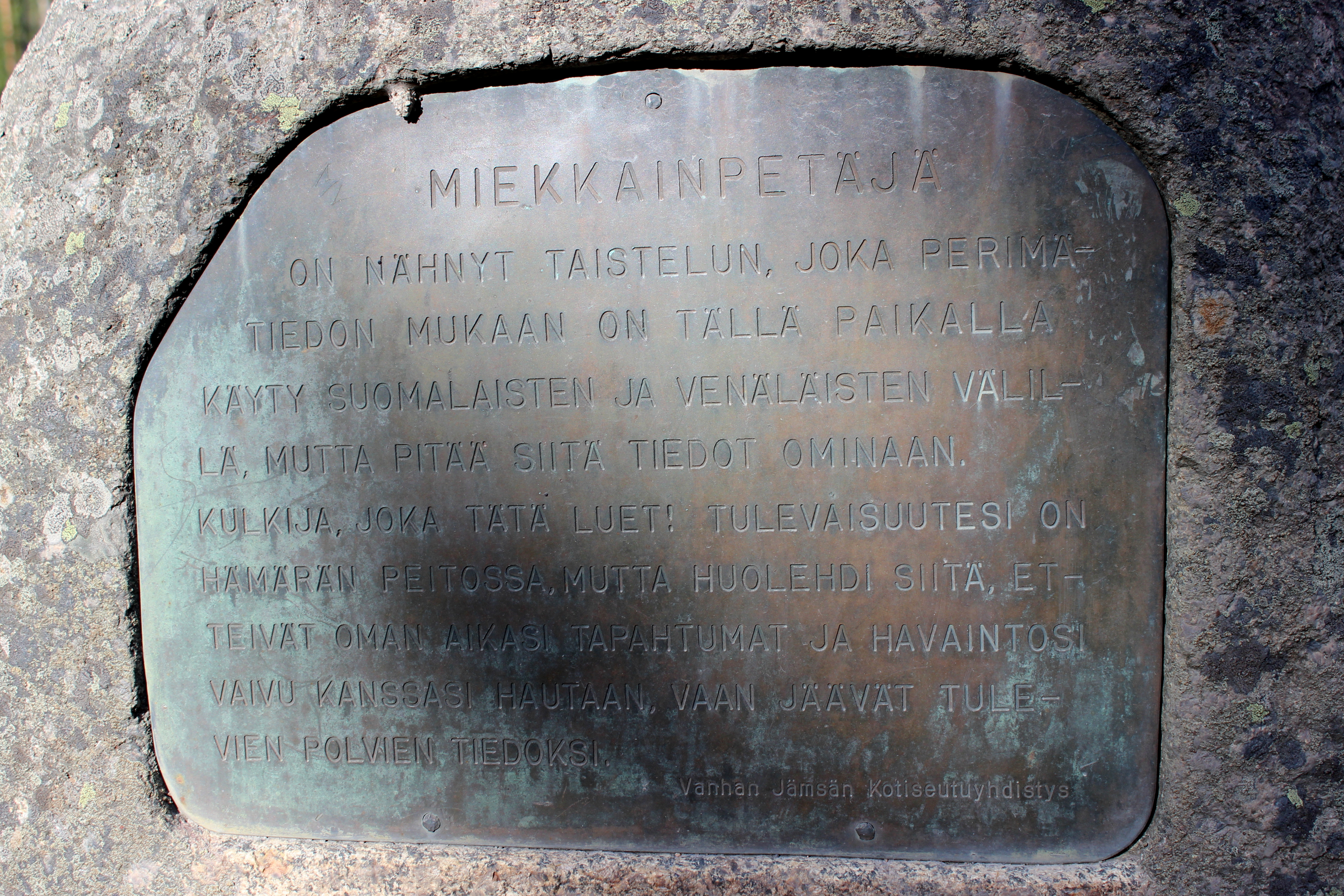 Vuonna 1959 Miekkainpetäjä sai muistolaatan, jossa on seuraava teksti: