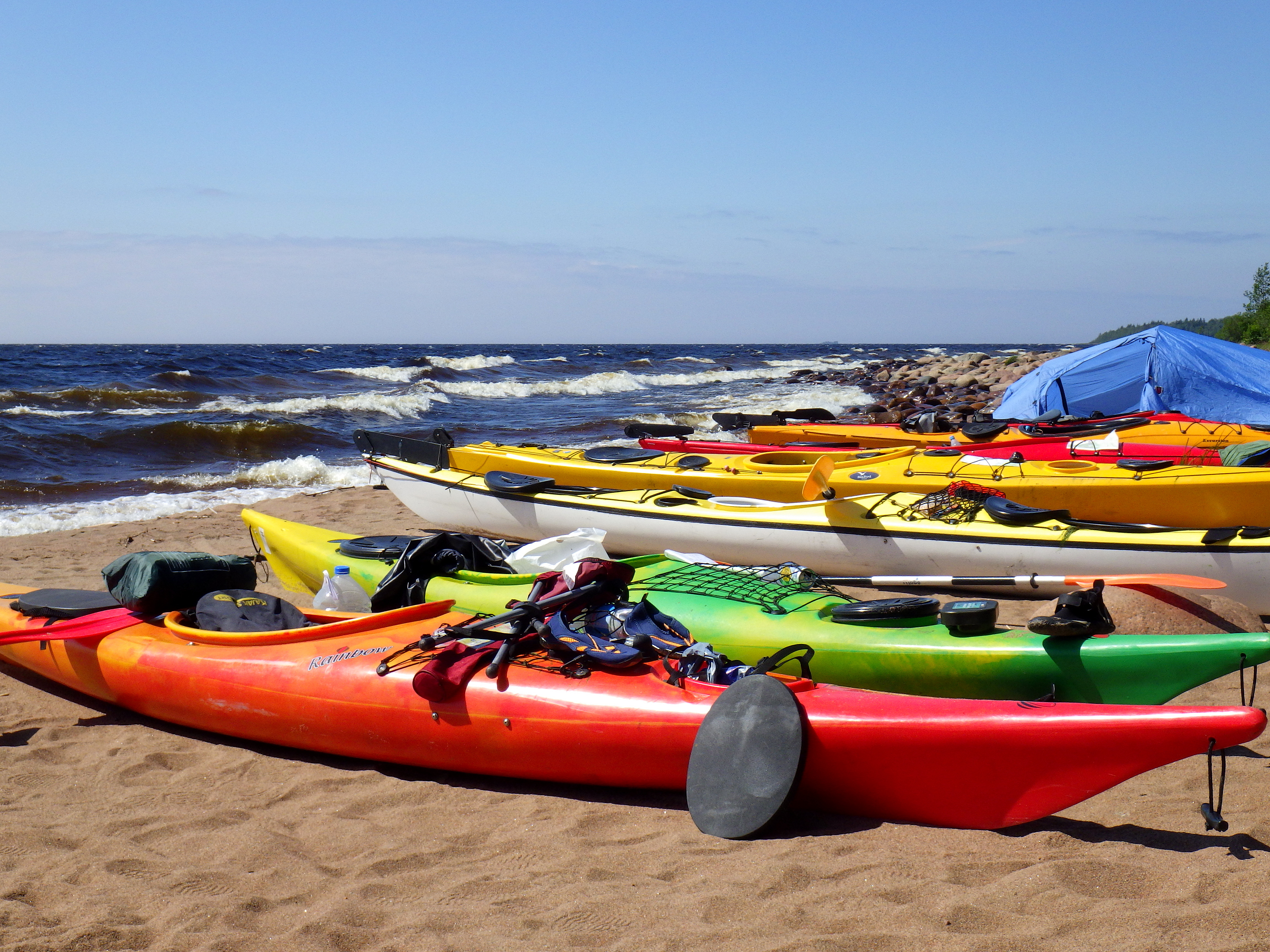 Matka eteni sivutuulessa. Aallot olivat niin suuria, että vierellä melovan kajakki hävisi välillä näkyvistä. Keskityin niin kovaa, että puristin melaa rystyset valkeina ja jokainen vartaloni lihas oli suorastaan krampissa koko ajan. Ensimmäiselle tauolle rantautuessa mainingit käänsivät kajakkini sivuttain ja seuraava aalto iskeytyi päälle kaataen minut. Jalat ylettyivät onneksi pohjaan, mutta vettä täynnä oleva kajakki iskeytyi päälleni maininkien mukana antaen mehevät mustelmat muistoksi. Talviturkki tuli heitettyä Laatokkaan, kaikki vaatteet hattua lukuunottamatta kastuivat. Ei auttanut muu kuin vaihtaa kuivaa ylle ja hengähtää hetki.