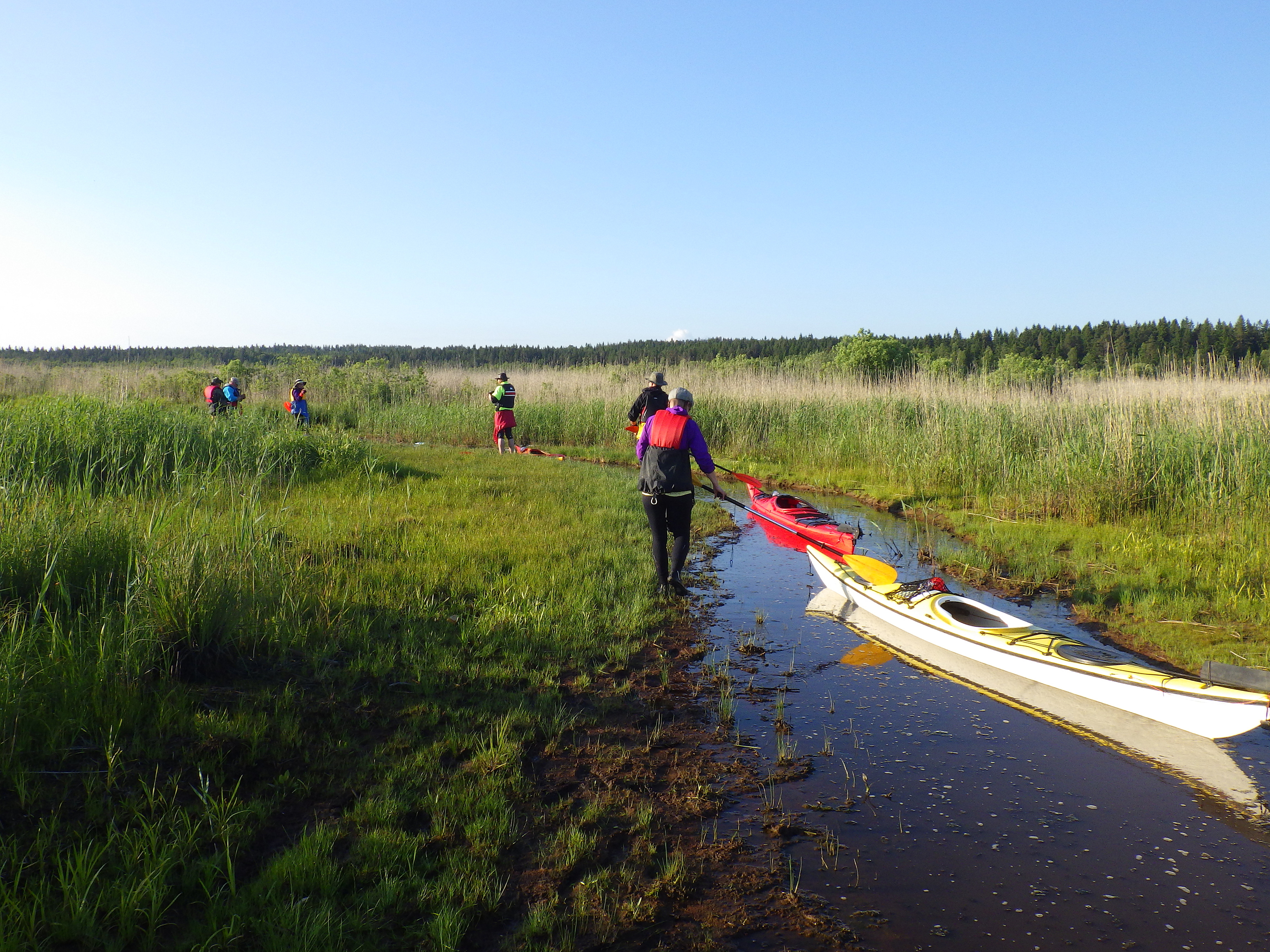 Kauniita paikkoja tuli vastaan jokaisella pysähdyksellä. Yhdellä tauolla löysimme orvokkimeren! Kerran yritimme oikaista pientä ojaa pitkin. Oja muuttui koko ajan matalammaksi ja matalammaksi. Lopulta oli pakko kääntyä takaisin ja ohjailla melalla kajakkia ojan reunalta käsin.