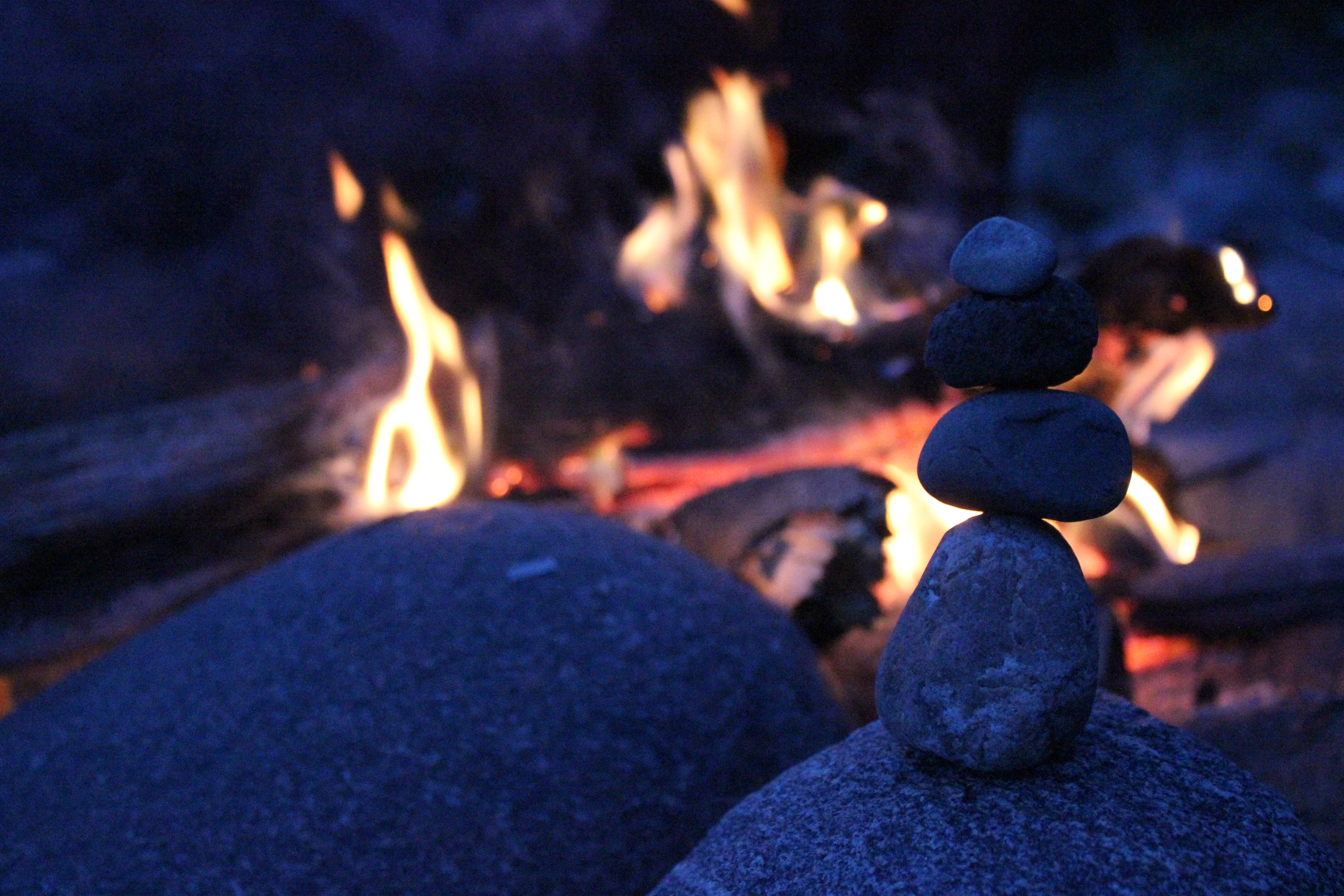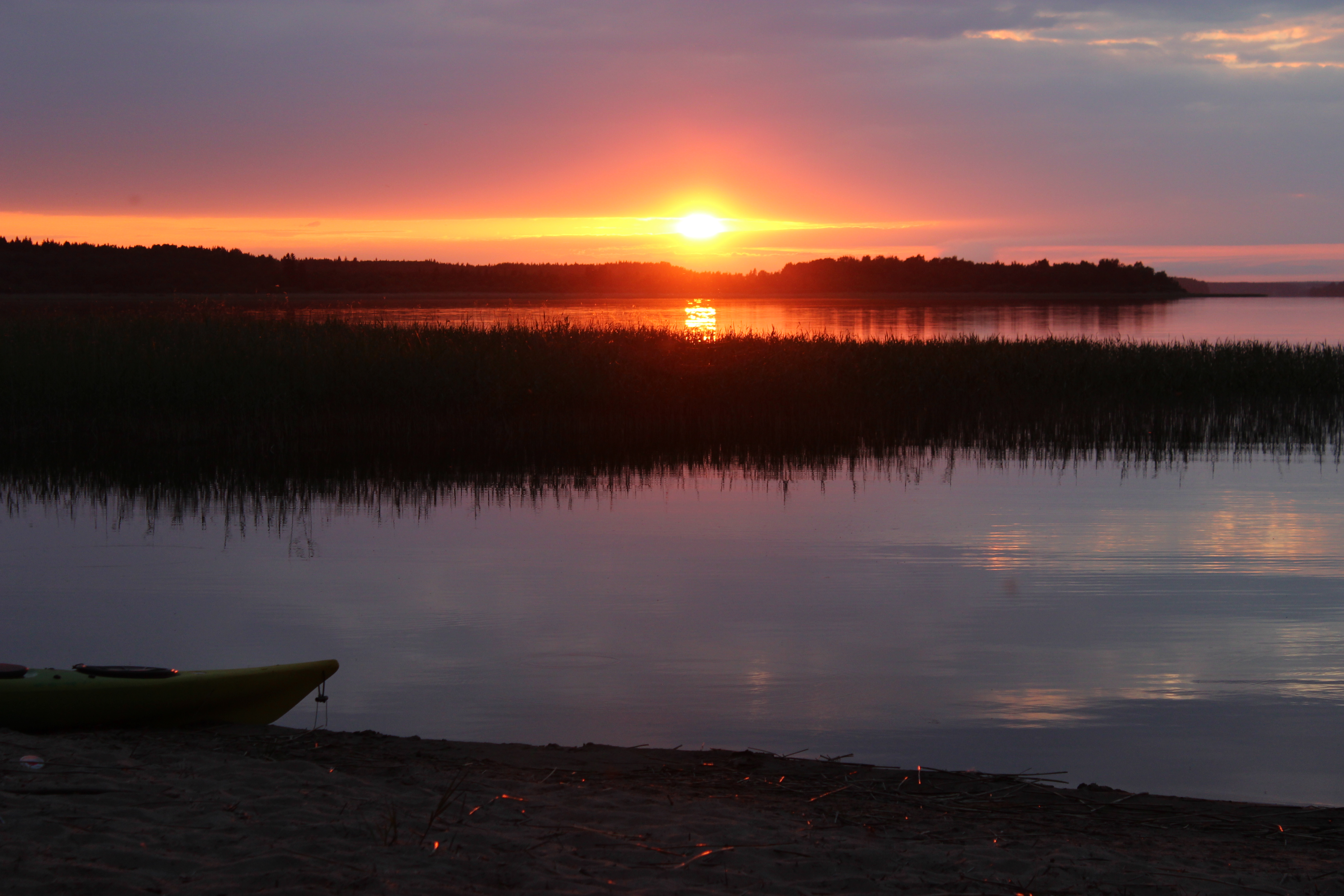 Kaiken jännityksen ja kauhun tasapainoksi reissu antoi paljon hienoja kokemuksia ja elämyksiä. Yhdellä uskomattoman kauniilla rannalla makasimme viiteen asti iltapäivällä odotellen aaltojen rauhoittumista. Ranta oli täynnä hiekkaa ja tolkuttoman kauniita kiviä. Olisin voinut tutkia niitä loputtomiin! Iltaisin istuimme nuotion äärellä ja jututtelimme tärkeistä ja vähemmän tärkeistä asioista. Erämaan ja rannattoman järven välisellä kapealla hiekkakaistaleella on yllättävän hienoa olla, on vähän niinkuin maailmalta piilossa.