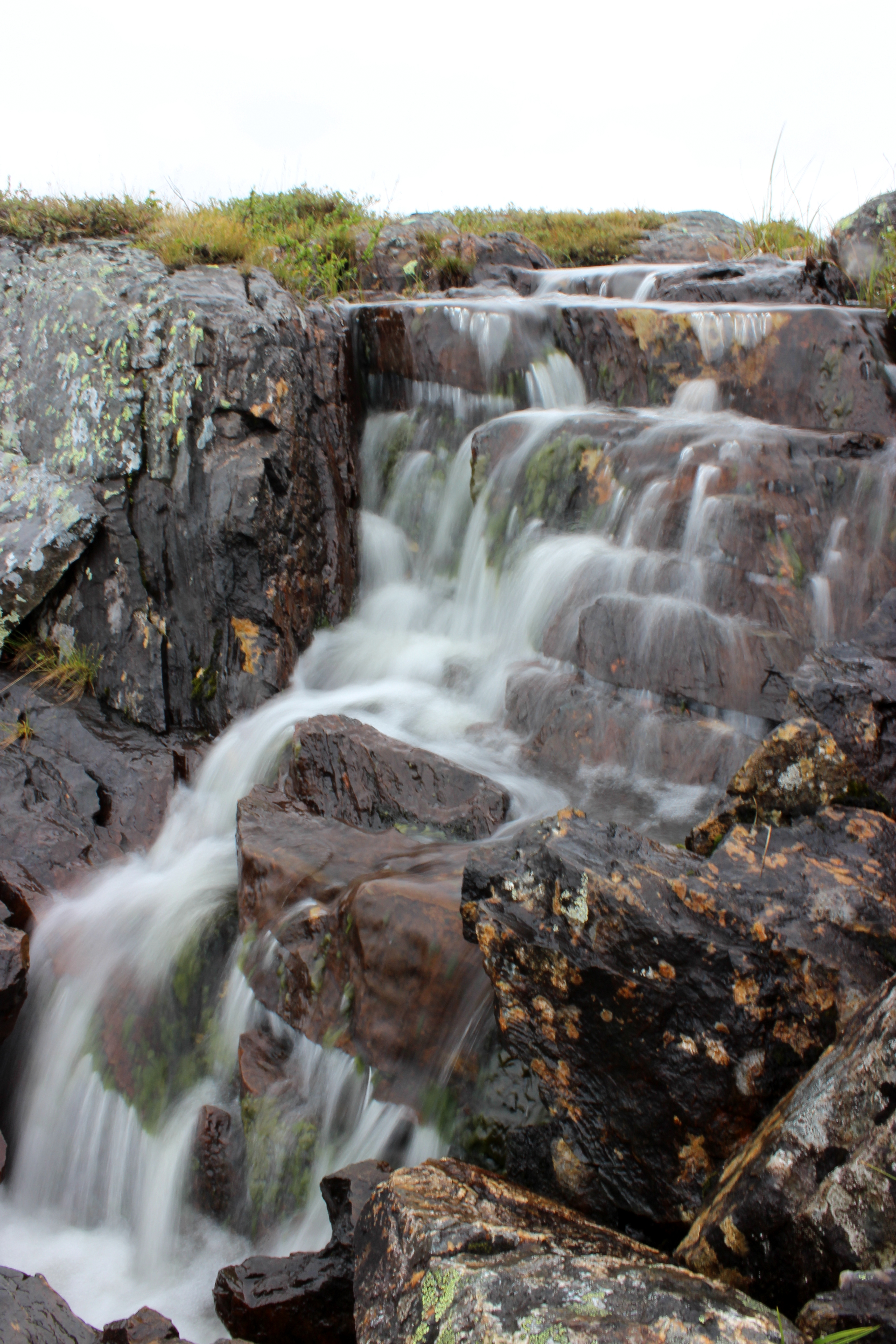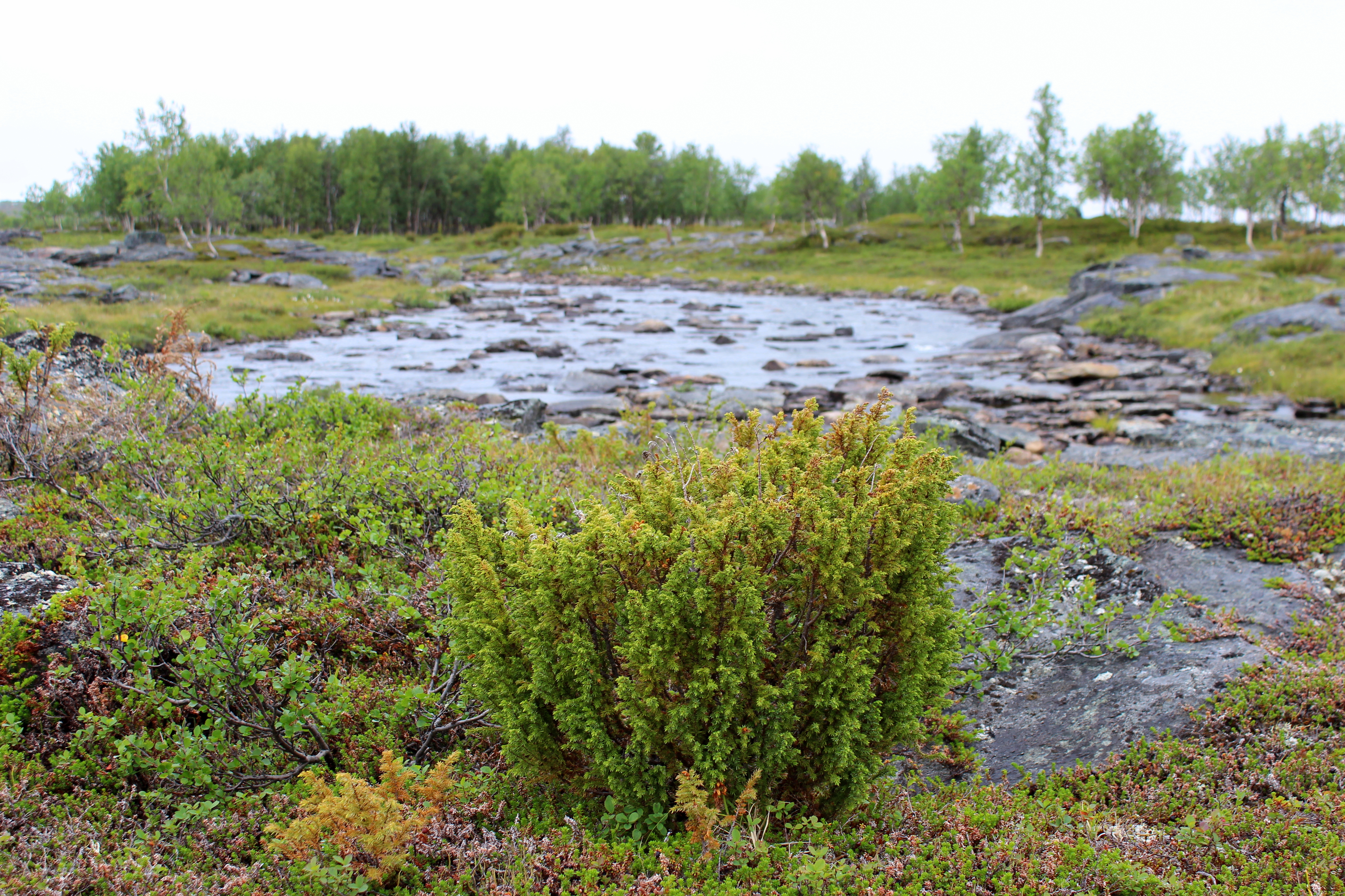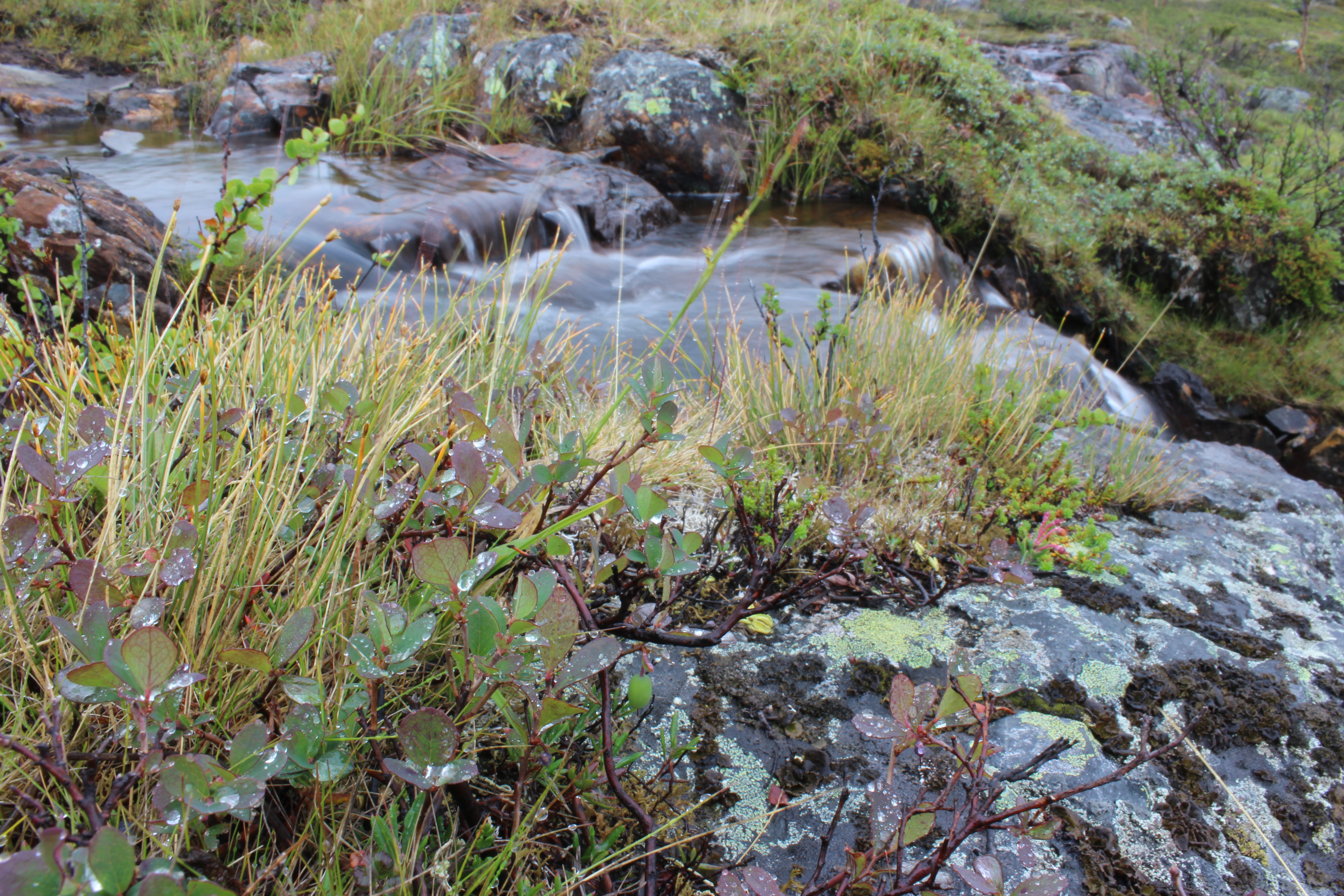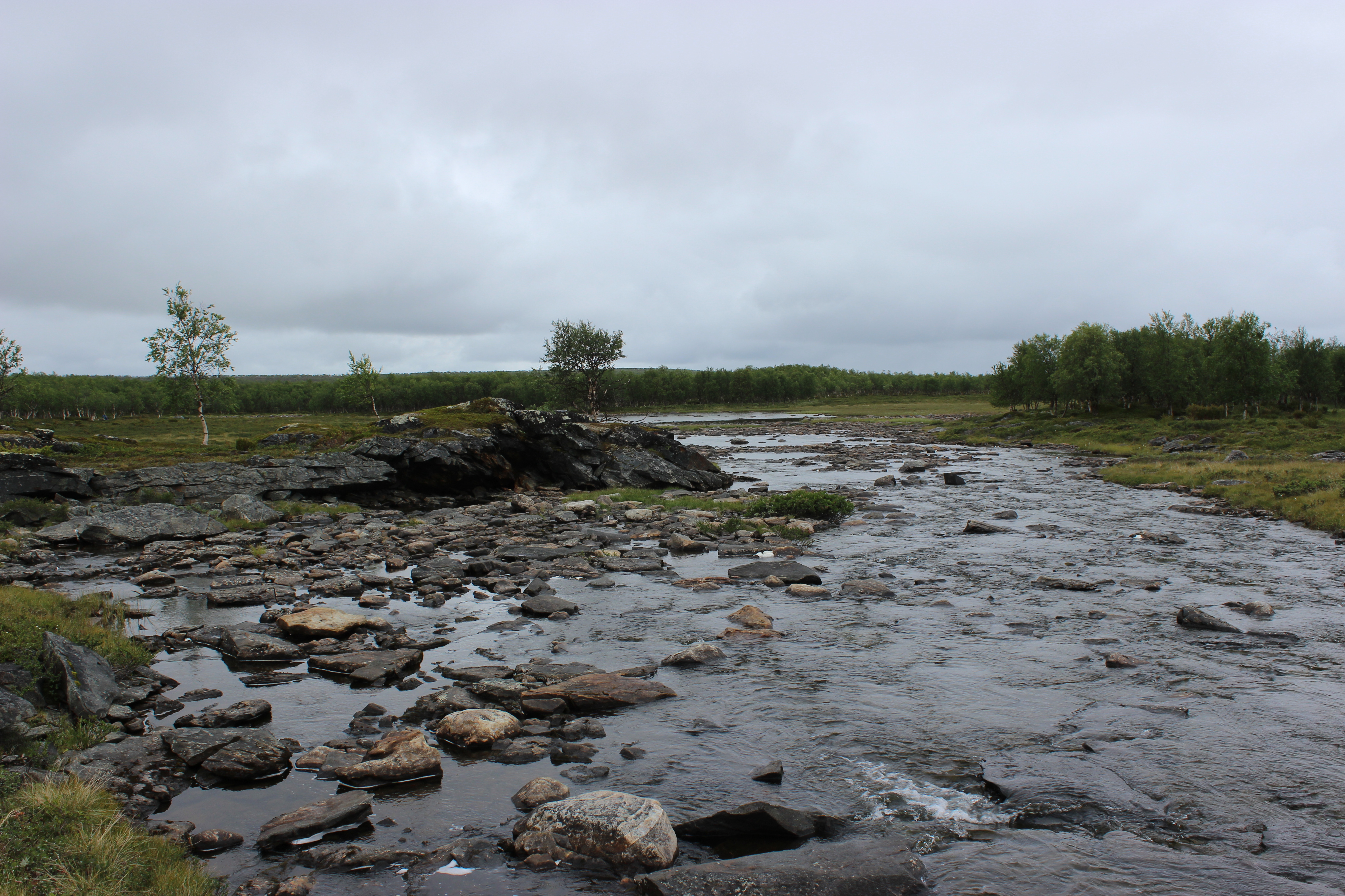 Silisjoki oli massiivinen. Oikealla näin kauempana putouksen, se kohisi kovaa. Joki oli ylitettävä kiviä pitkin hyppimällä. Jätin rinkan tunturikoivikon reunaan ja läksin tutustumaan jokeen tarkemmin. Olin haaveillut kalastamisesta, mutta joki olisi vaatinut perhovehkeet. Minä en osaa sellaisia käyttää, minulla oli vain pieni teleskooppivirveli. Harmitti vähän, vaikka joki olikin uskomattoman kaunis!