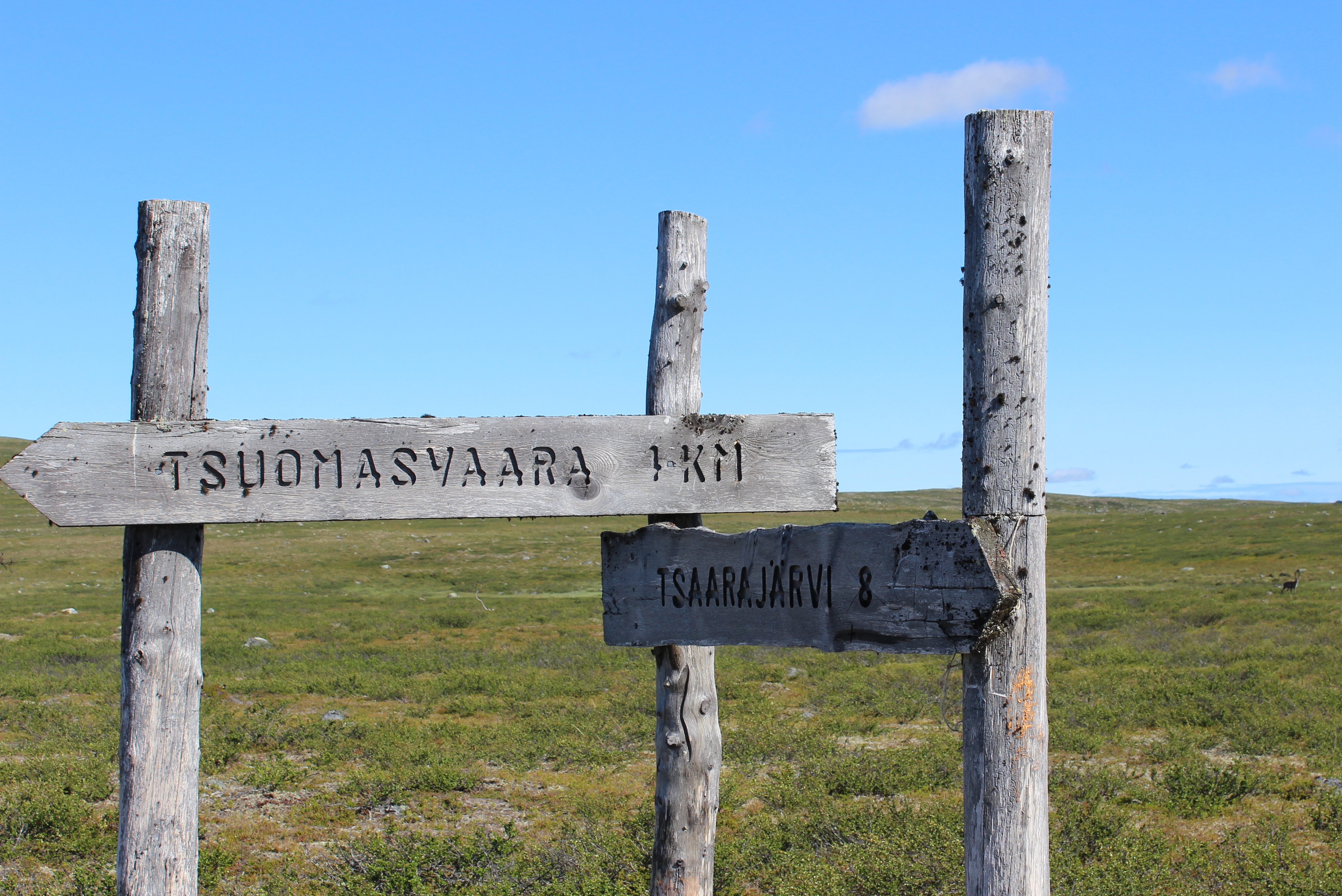 ”Rinne oli täynnä vanamoita, maariankämmeköitä, vilukkoja, vaivaiskoivuja ja tunturimittareiden tuhoamia tunturikoivuja. Matkalla ylös näin myös muutaman kulleron! Olen aina haaveillut näkeväni niitä luonnossa ja nyt näin. Riekkoja oli niin paljon, että meinasin astua päälle! Yksi rohkea ei ollut minusta millänsäkään vaan röhki hauskasti ja tuijotteli minua silmiin. Tunturikihu lenteli minua kohti. Huipulla oli myös poroja.”