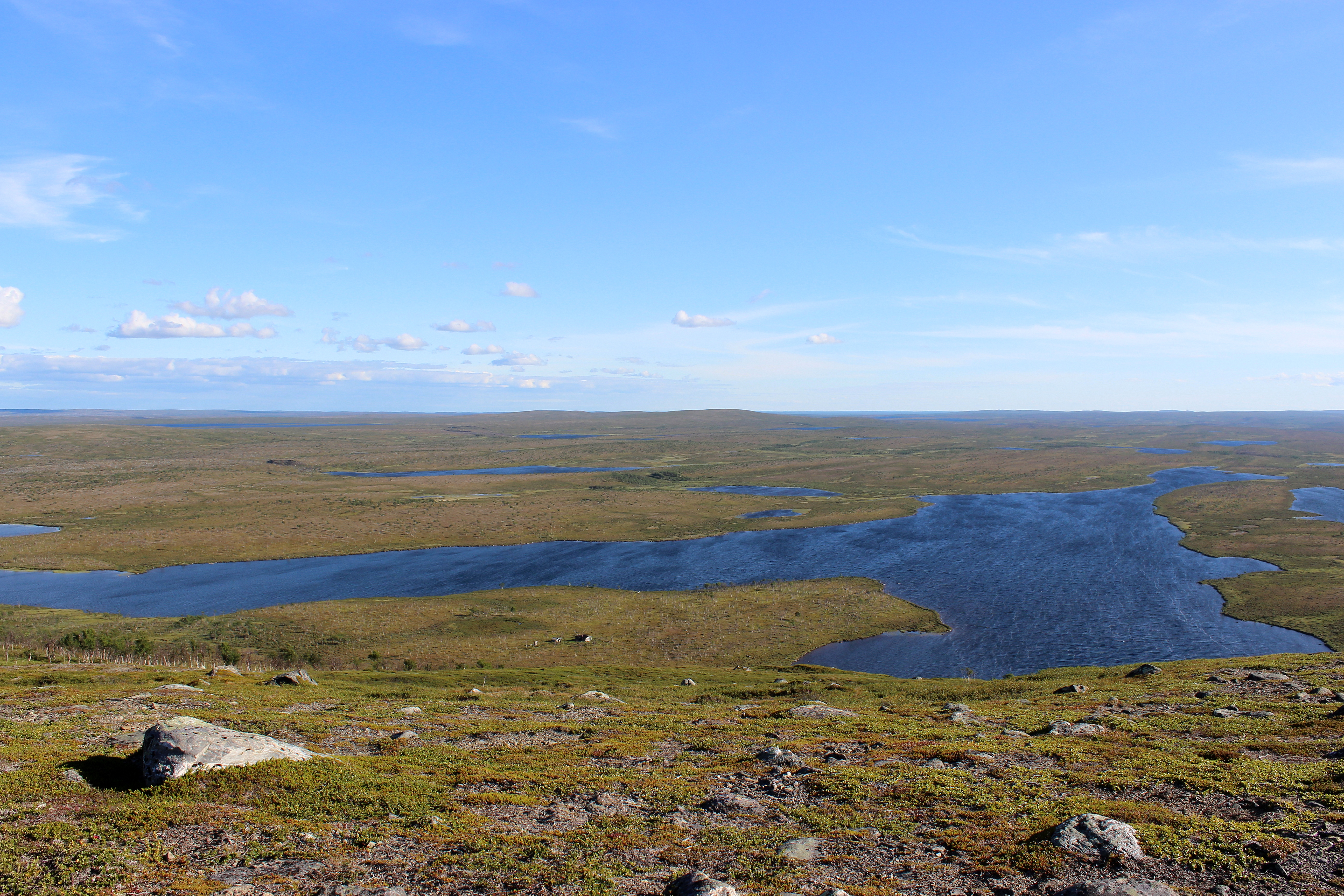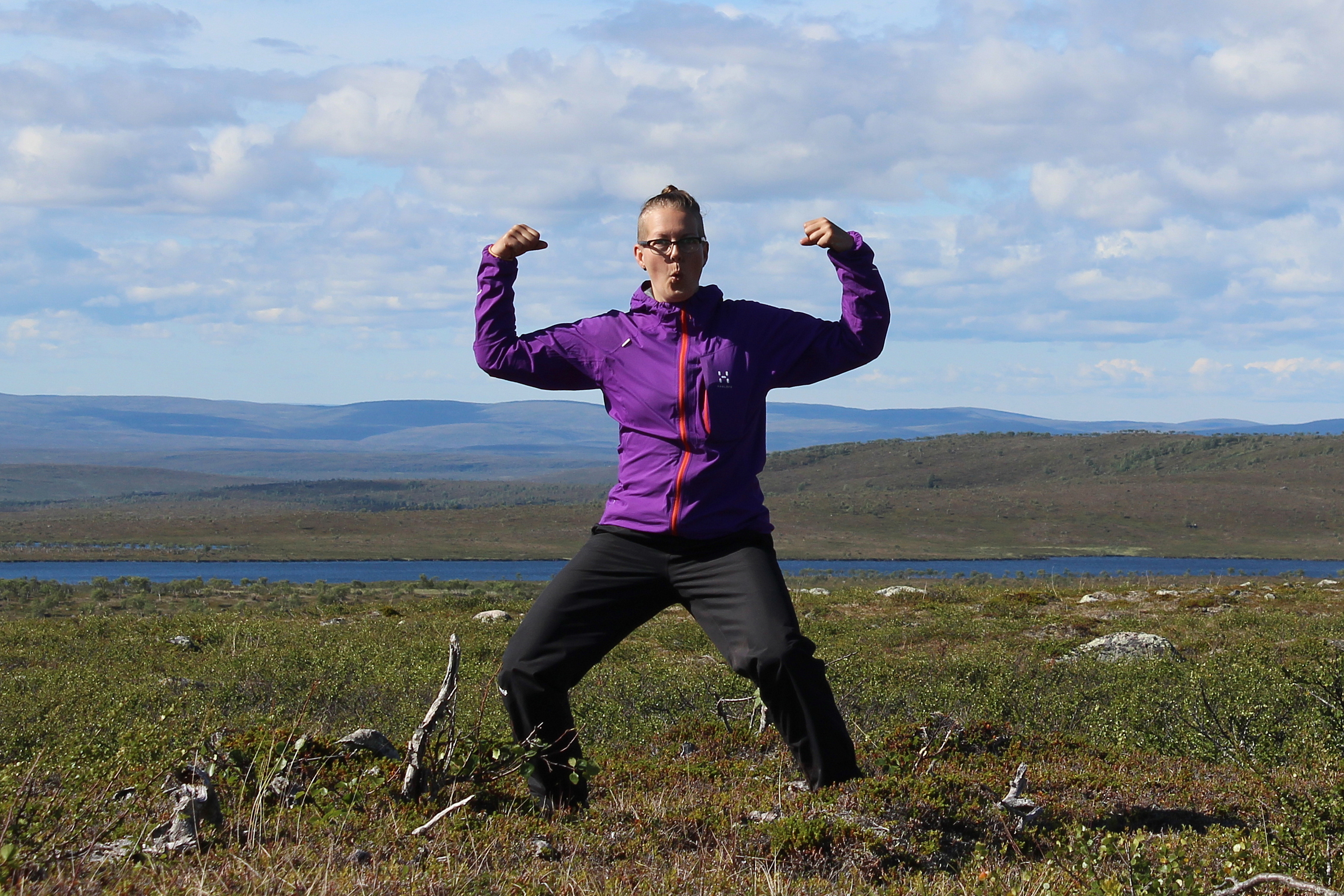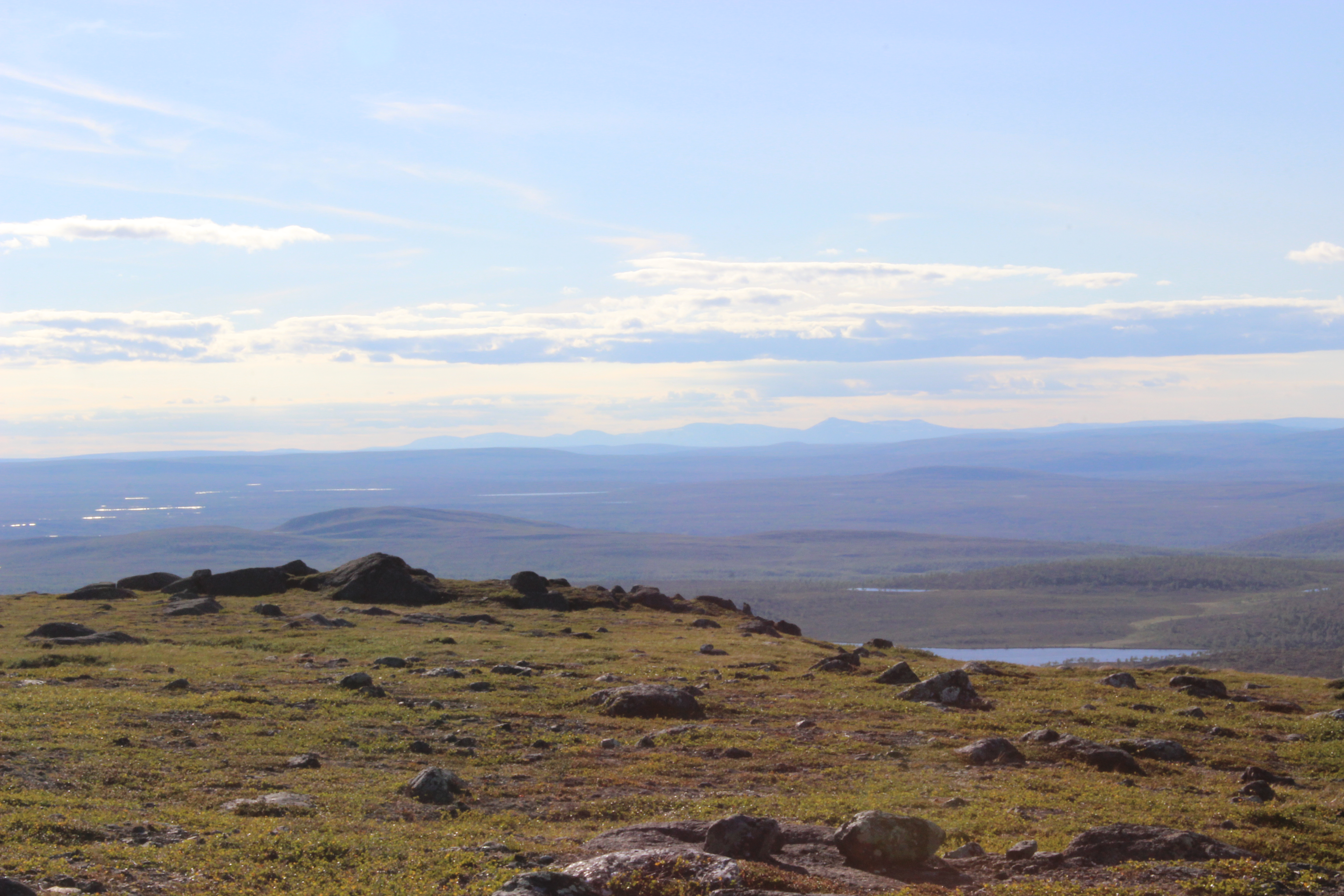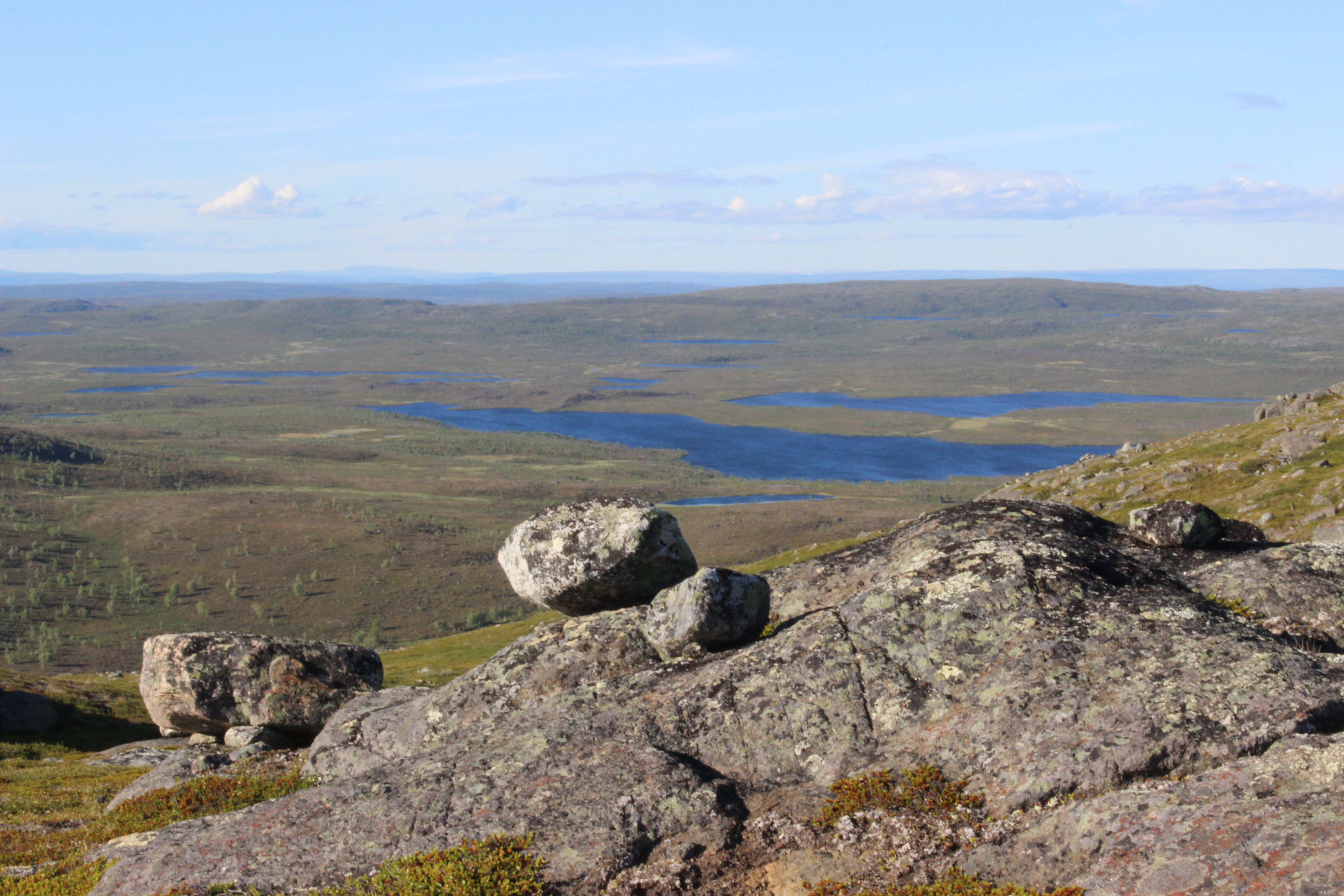 Itkin ja nauroin huipulle päästyäni. Maisemat oli ihan naurettavan hienot! Norjaan asti näkyi ja ainakin puolet Suomesta. Tuntui älyttömältä nähdä niin monta järveä ja lampea samalla silmäyksellä. Maisema oli silkkaa kauneutta. Tuntui että tuuli voisi lennättää minut satojen kilometrien päähän. Oli epätodellinen olo!