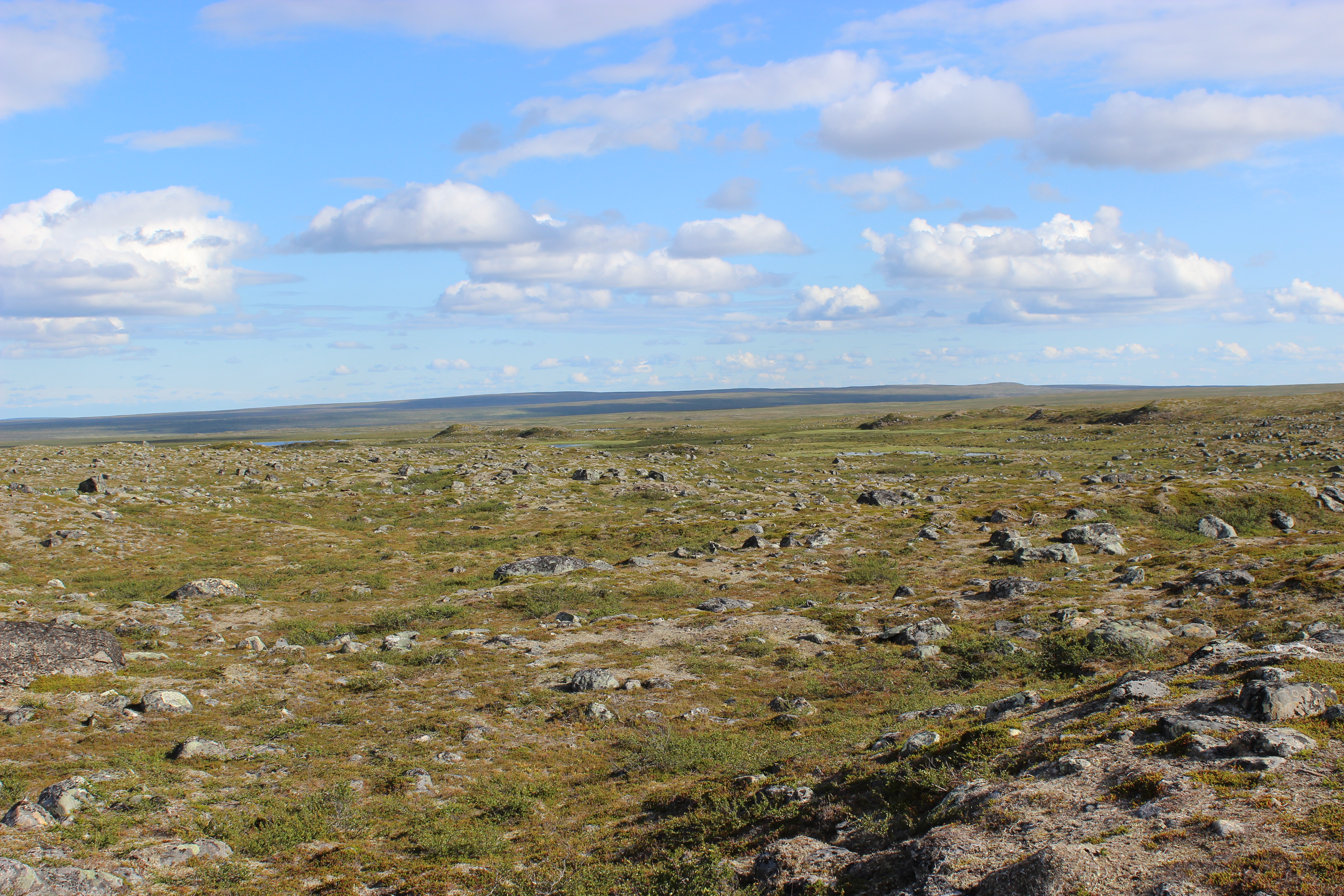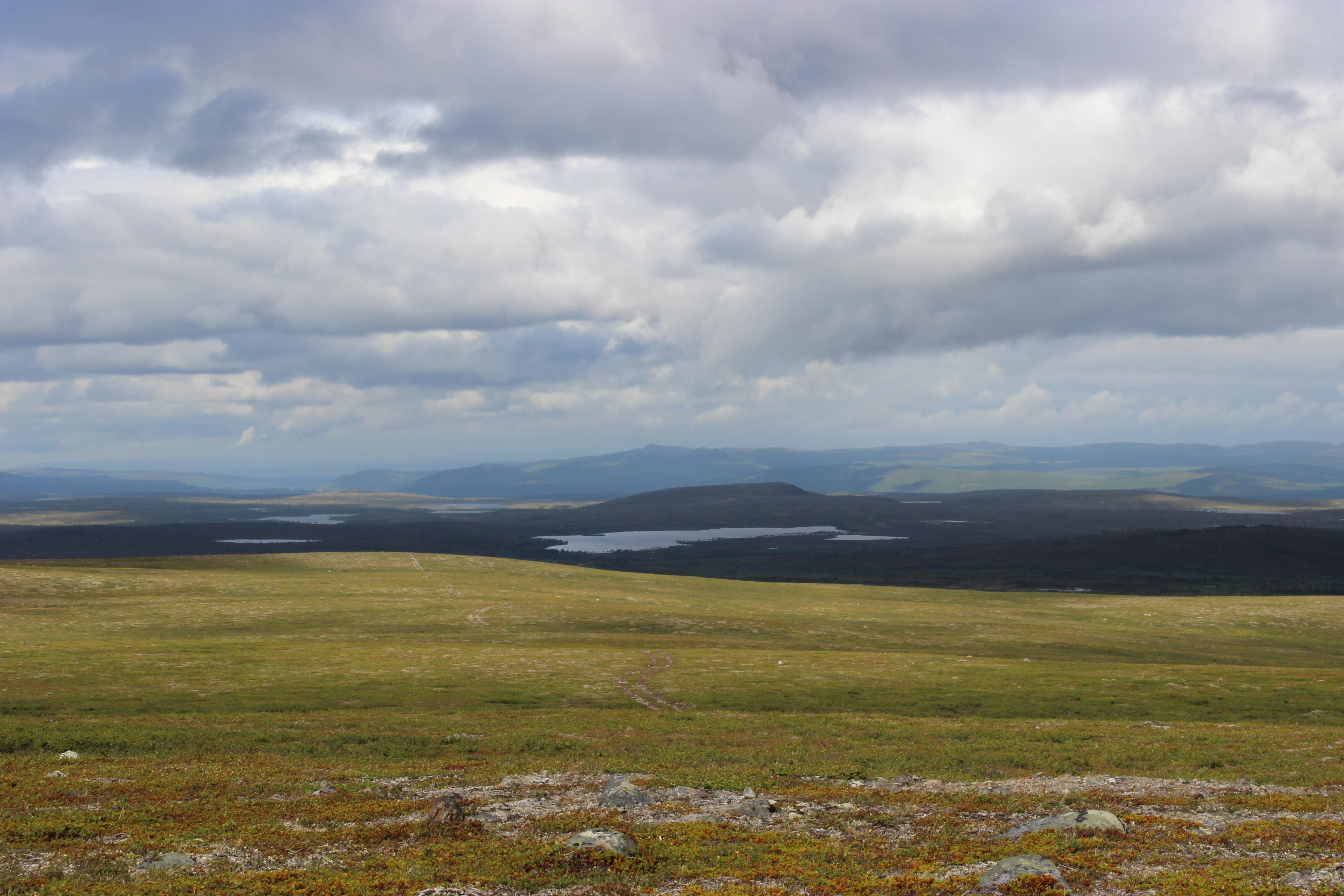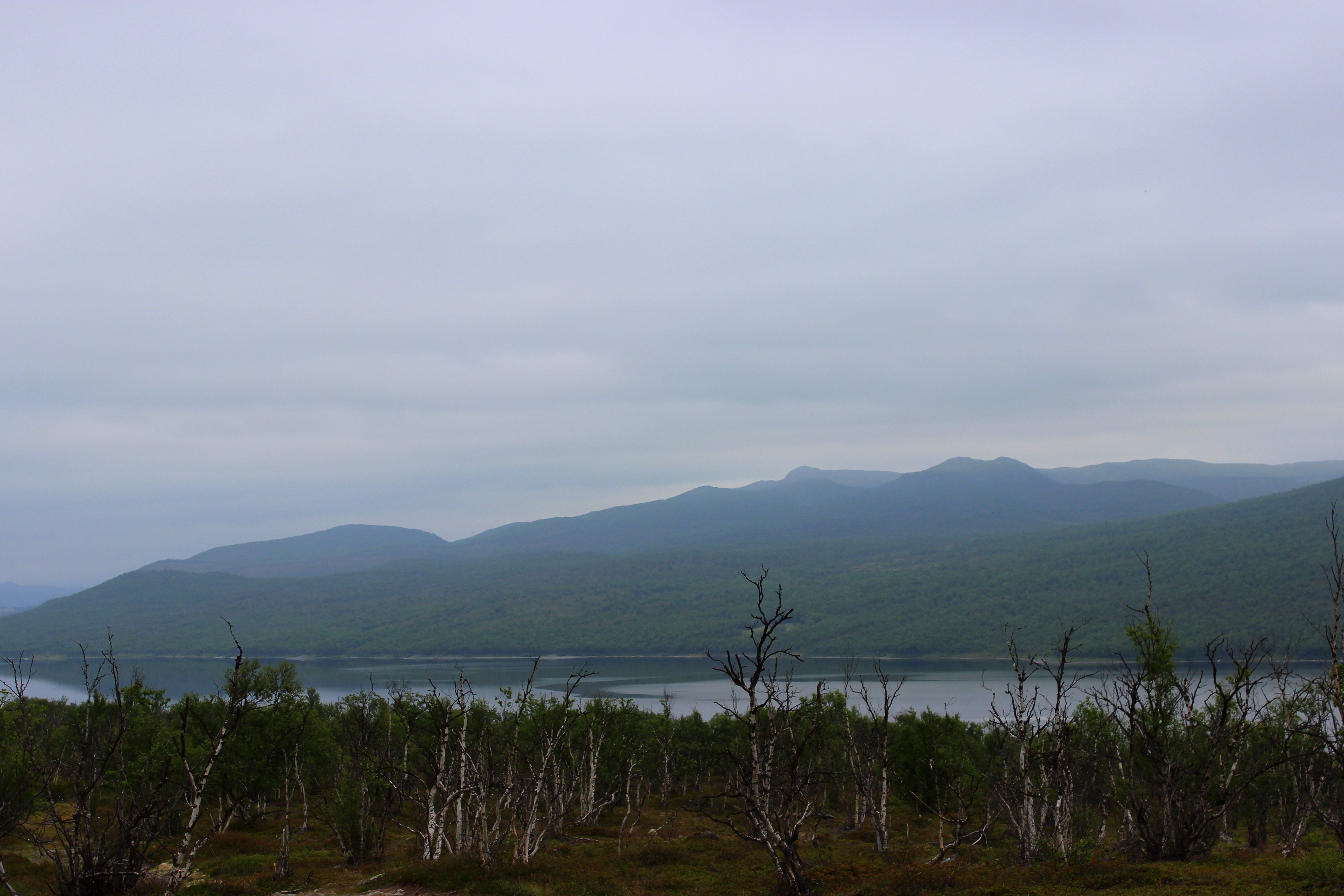 ”Aamu on ihan uskomattoman kaunis. On peilityyntä, lähellä olevat lammet heijastavat sinisen taivaan. Lähellä käyskentelee poroja. Ellei kivitasku naksuttaisi ja pari hyttystä inisisi, olisi aivan totaalisen hiljaista. Ihan uskomatonta! Aamu-utu alkaa jo taivaanrannastakin hälvetä, joten Norjan lumiset tunturit erottuu. Taivaalla on vain muutamia pieniä pilviä. Ei tästä tahtoisi pois ollenkaan.”