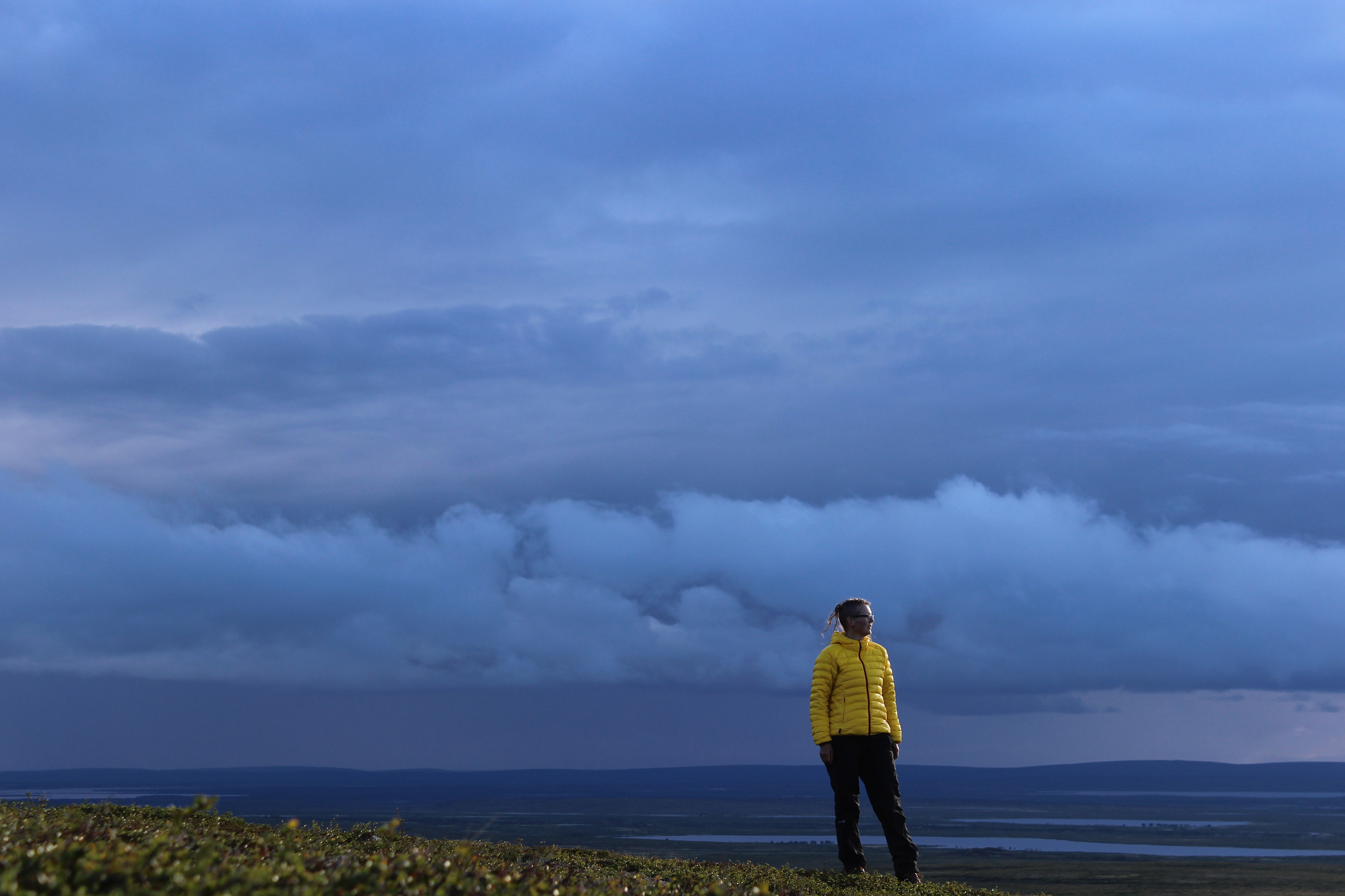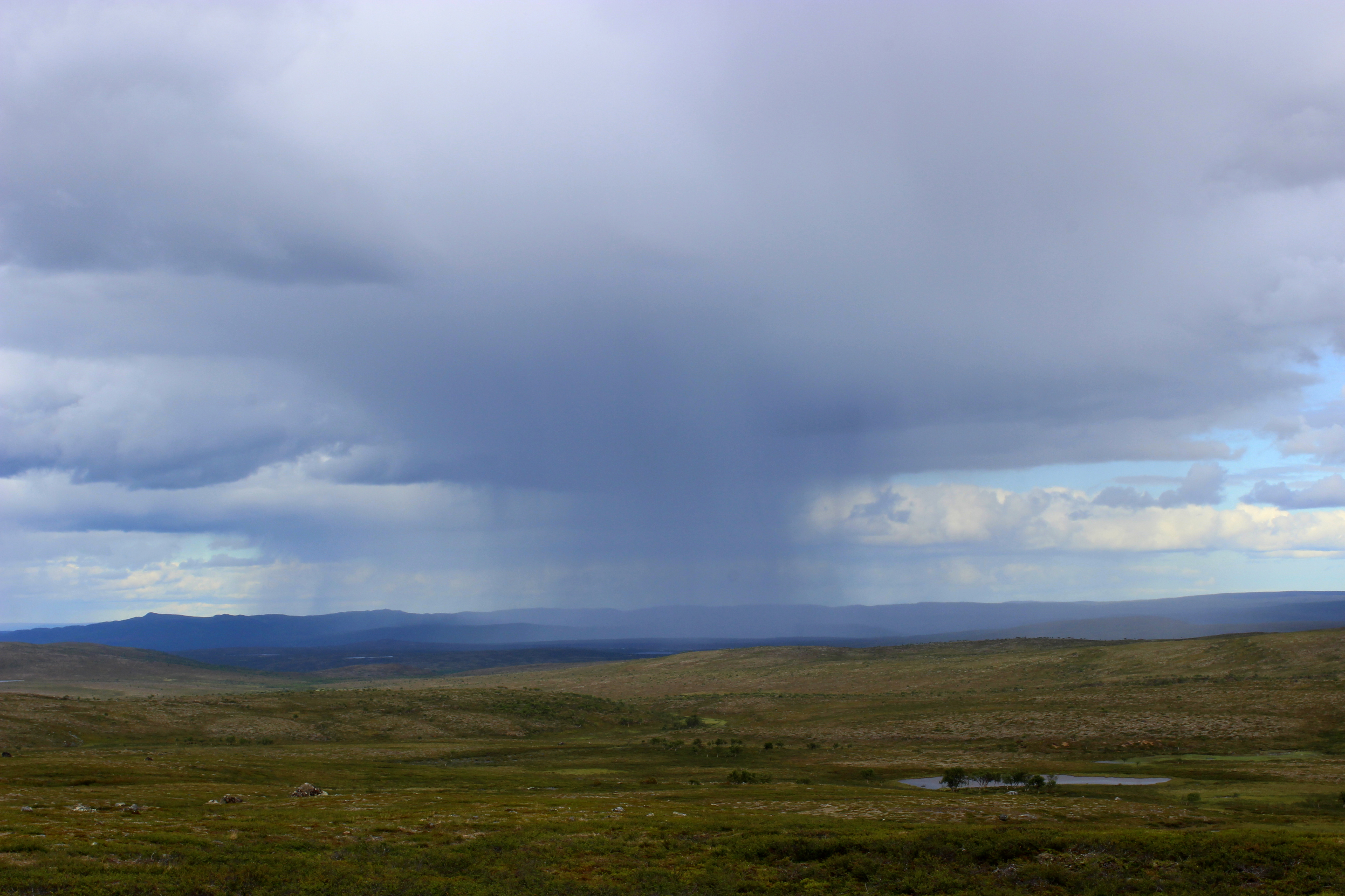 Kuumuus vei voimat. Olin ihan poikki, kun aloin virittelemään telttaa melkein samaan paikkaan, missä olin ollut yötä tullessakin. Halusin kunnon näköalahuoneiston, joten pystytin teltan melkein tunturin laelle. Sain hädintuskin ruuan laitettua, kun oli niin väsynyt olo. sää oli ennusteen mukaan muuttumassa huonommaksi. Yöllä sitten alkoikin satamaan. Sadetta jatkui ihan jatkuvasti ja päätin pitää huilipäivän. Teltta sai olla kaksi yötä näköalapaikalla, lueskelin teltassa kirjaa, jossa opetetaan ajattelemista. Löysin siitä paljon hyviä vinkkejä omaan elämään.