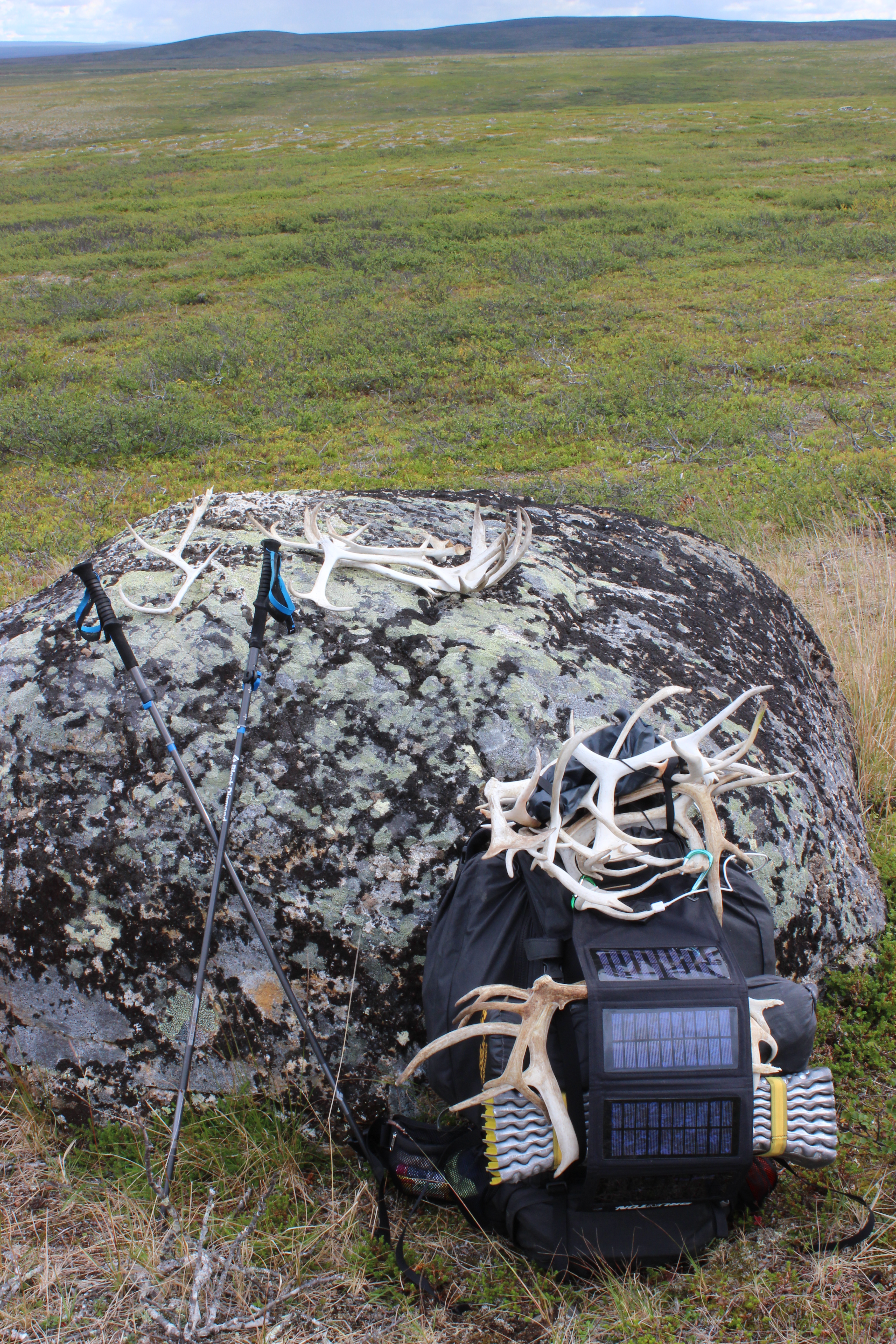 Sadepilvet tuntuivat ajavan minua takaa. Löysin koko ajan poronsarvia. Sen verran hullu olin, että keräsin kaikki, joita ei ollut kukaan ehtinyt järsimään. Jossain vaiheessa tulin erikoiselle tasangolle, se oli kuin pieni pallokenttä. Sen ympärillä ja itse ”kentällä” oli tosi monet sarvet. Mietin oliko se joku omituinen taistelutanner, jossa sarvipäät käy ottamassa toisistaan mittaa. Minun oli jokatapauksessa alettava jo etsimään irtoremmejä rinkasta ja valittava mistä sarvista raaskisin luopua. Sarvista kertyi helposti muutama lisäkilo kannettavaksi…