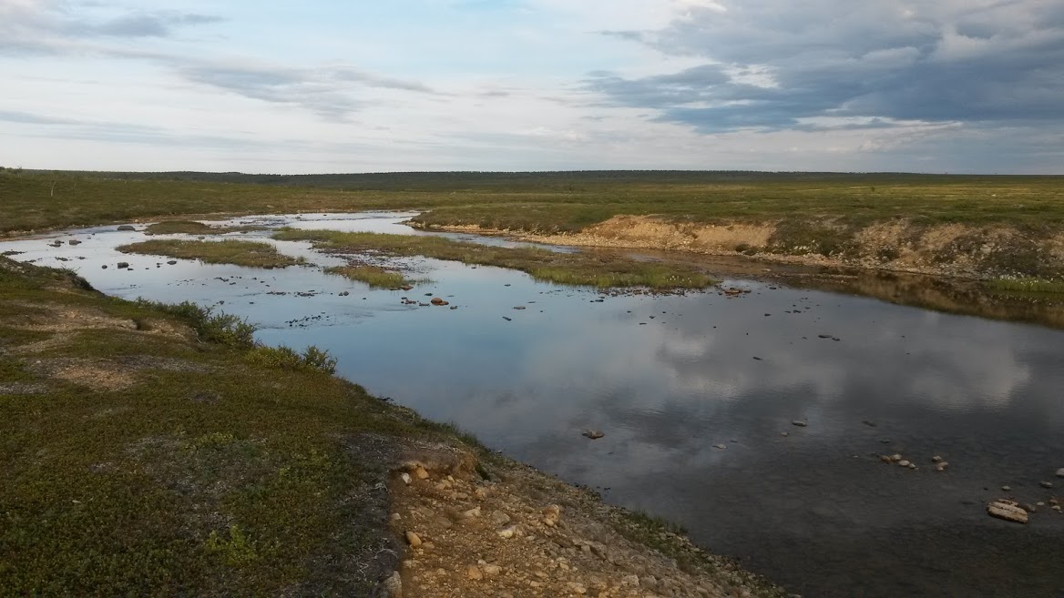 ”On täällä kyllä ihanaa. Nytkään ei kuulu mitään ääniä. Yksinäinen poro syö lähellä suoalueen reunassa. Ihan teltan vieressä on pieni puro, jossa on niin kirkasta vettä, ettei sellaista ole olemassakaan. En ole vielä kertaakaan tällä reissulla maistanut vedessä mitään sivumakuja.”