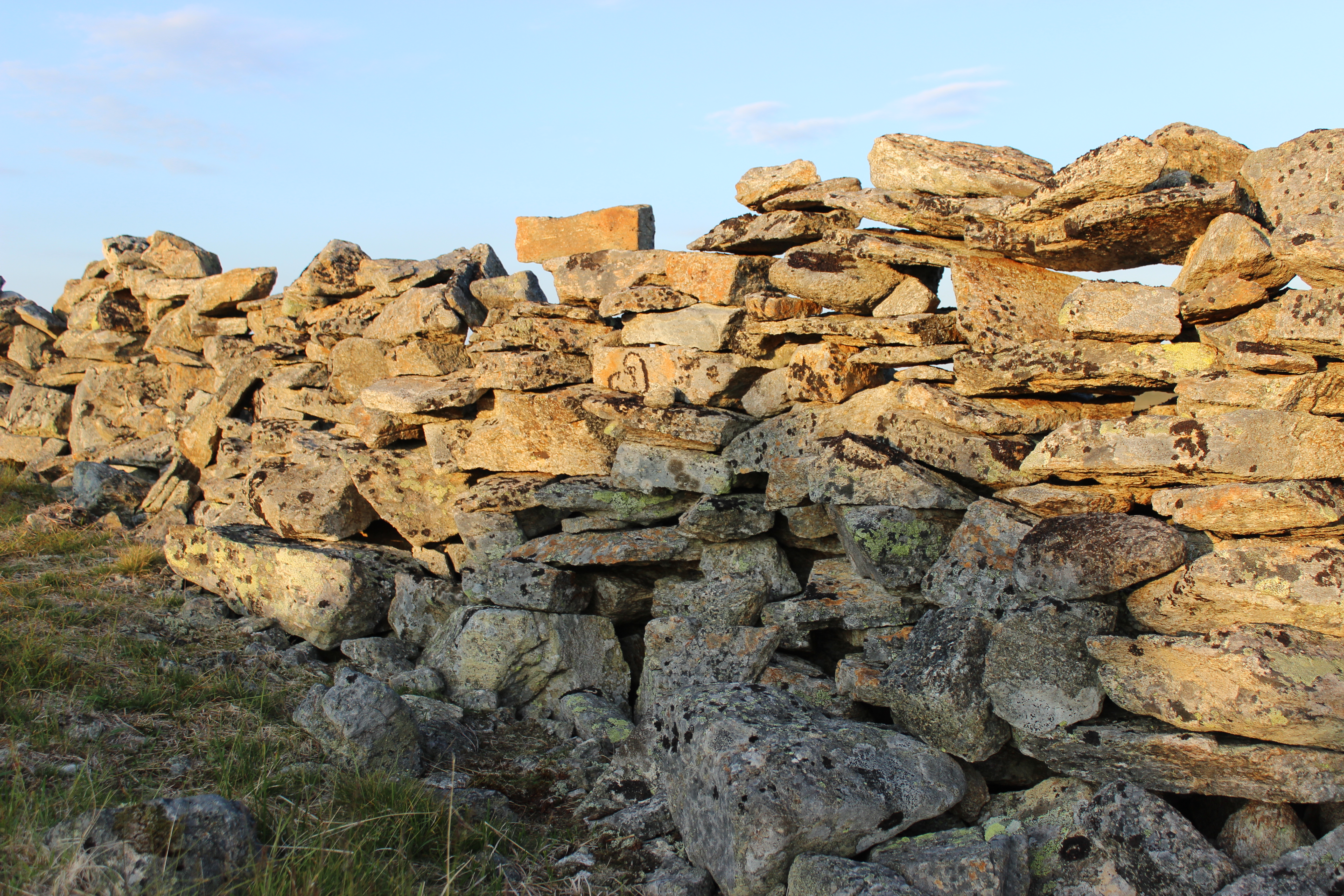 En voinut kun ihastella hengästyttävää rakennelmaa. Minulle tuli mieleen Egyptin pyramidit, että tämä oli saamelaisten versio kivirakennuksista. Tässä vain oli jotain järkeä, tätä oli käytetty työhön eikä hautapaikaksi. On vaatinut melkoista omistautumista ja ryhmätyötä saada moinen aita rakennettua. Ja kaikki on saatu aikaan käsivoimin, ilman mönkijöitä tai traktoreita.