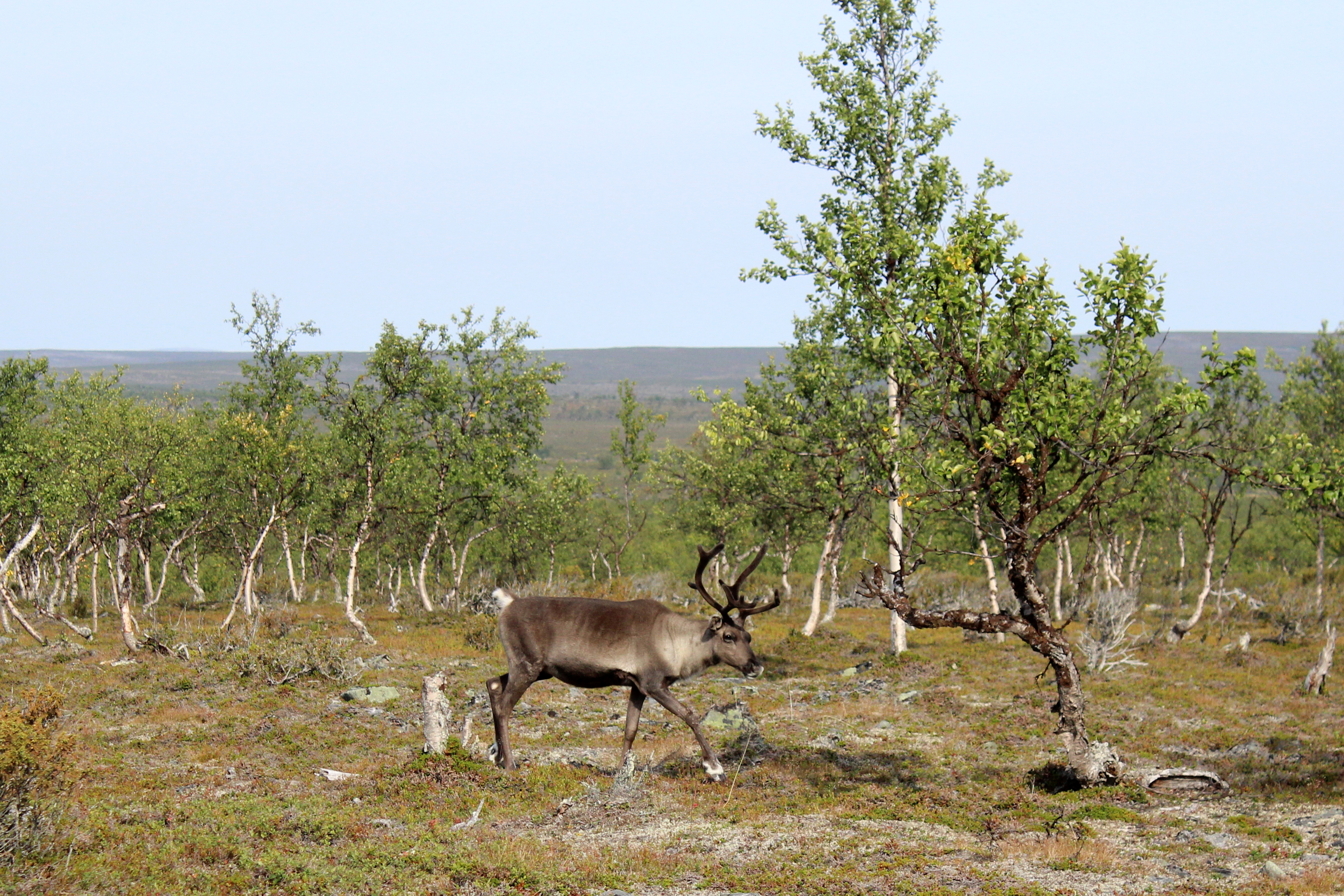 Jonkun aikaa tutkin karttaa oviaukossa ja kun katsoin vastapäätä olevia maisemia, näin jotain jännää! Vastapäisen tunturin rinnettä juoksi alaspäin joko karhu tai ahma! Vauhti oli kova ja liikkuminen täysin erilaista kuin poroilla, erehtymisen mahdollisuutta ei ollut. Olento oli kuitenkin sen verran kaukana, etten varmaksi voinut sanoa kumpi eläin se oli. Salamana se oli alhaalla kohdassa, johon en nähnyt, enkä enää koskaan saanut sitä silmiini vaikka kuinka yritin tarkkailla maastoa.