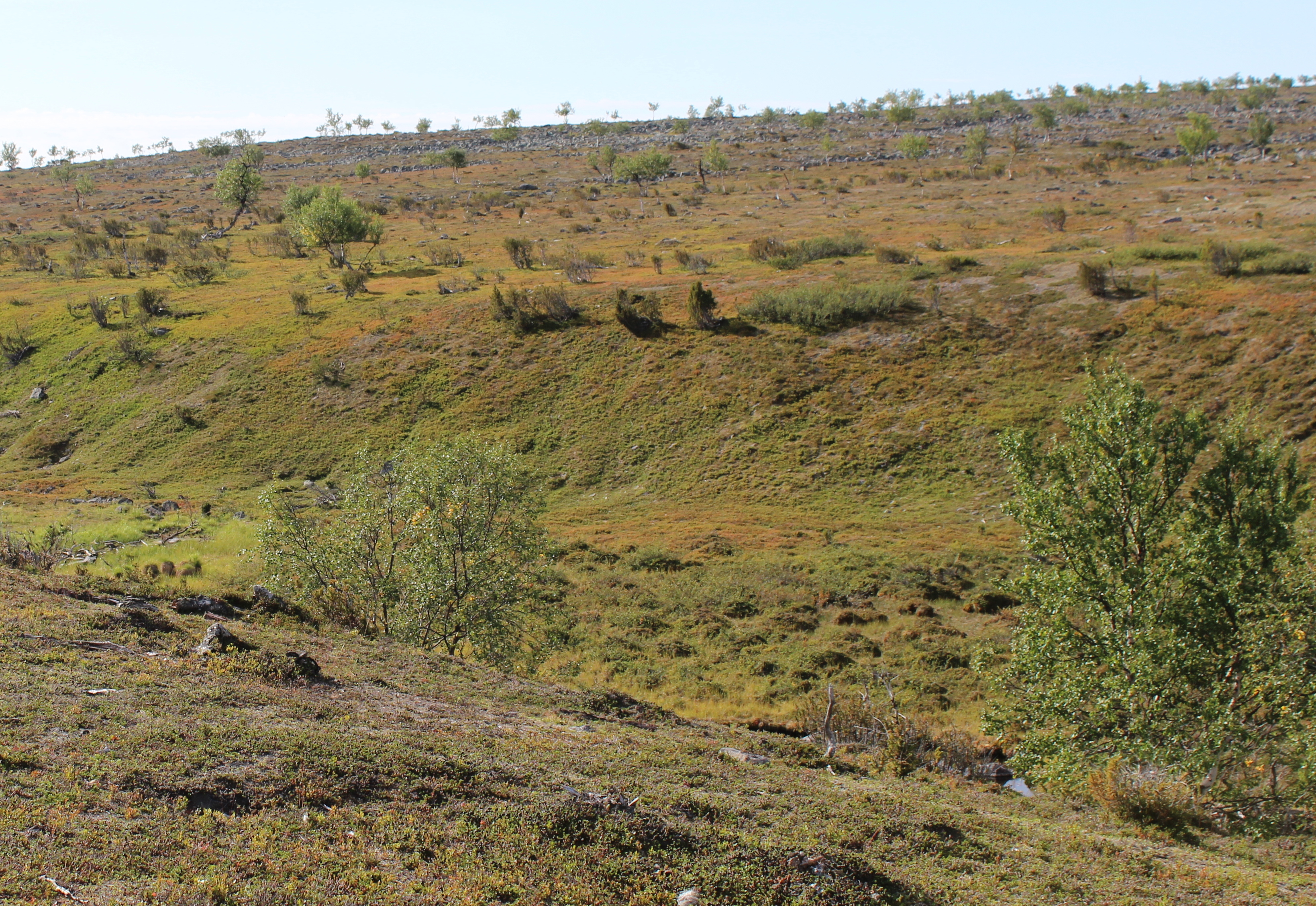 Olin lukenut karttaa vähän huonosti ja saavuin Erttetvarrin viereiselle tunturille enkä Erttetvarrille. Näin jo vanhan poroerotusaidan. Välissämme oli kuitenkin suo, jonka kierrettyä jouduin kävelemään pari ylimääräistä kilometriä.