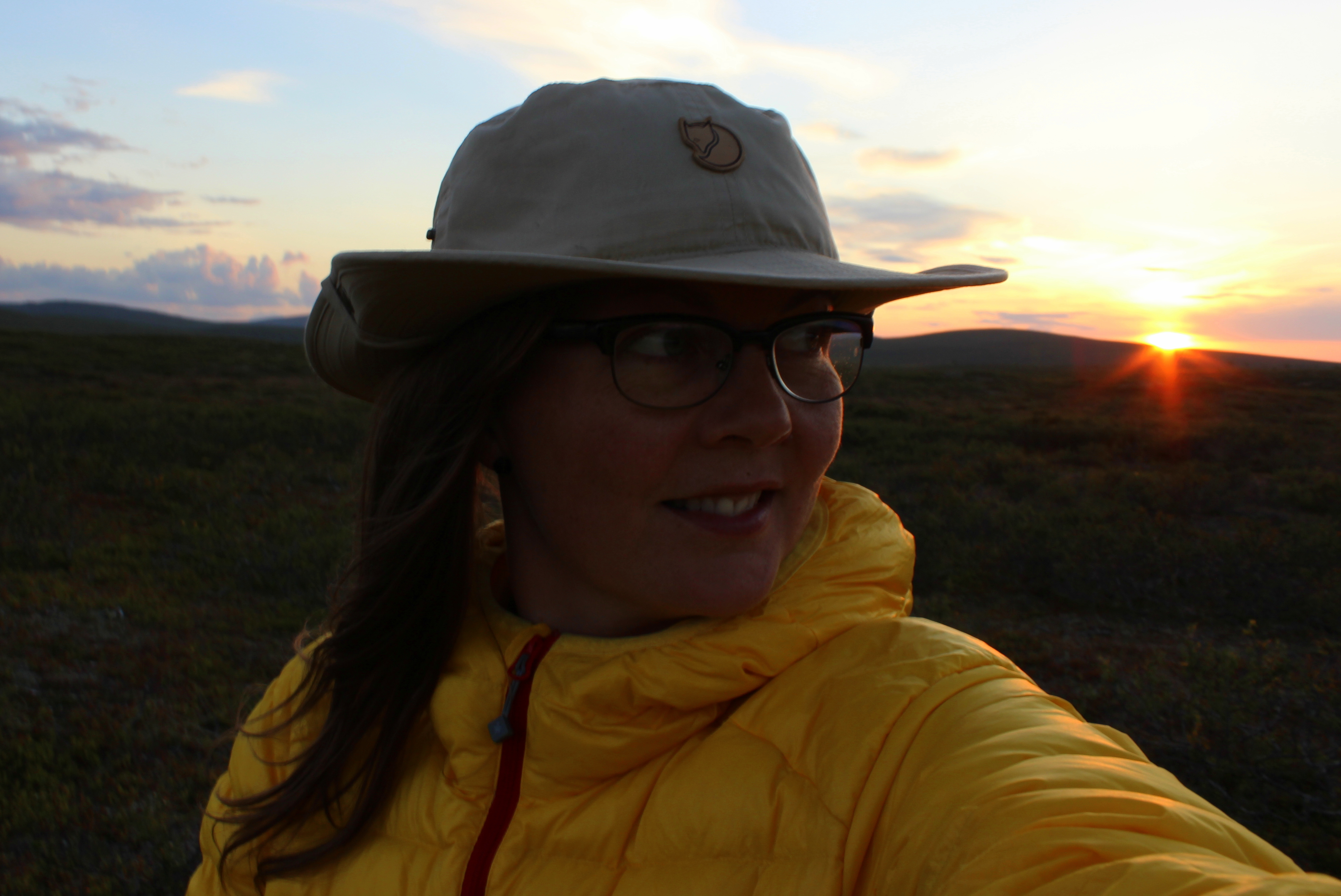 Perillä olin yhdeksän aikaan illalla. Auringolla oli taas oranssit valot päällä ja se loi pitkiä varjoja tuntureille. Tipautin rinkkani maahan ja melkein unohdin sen olemassaolon samantien.