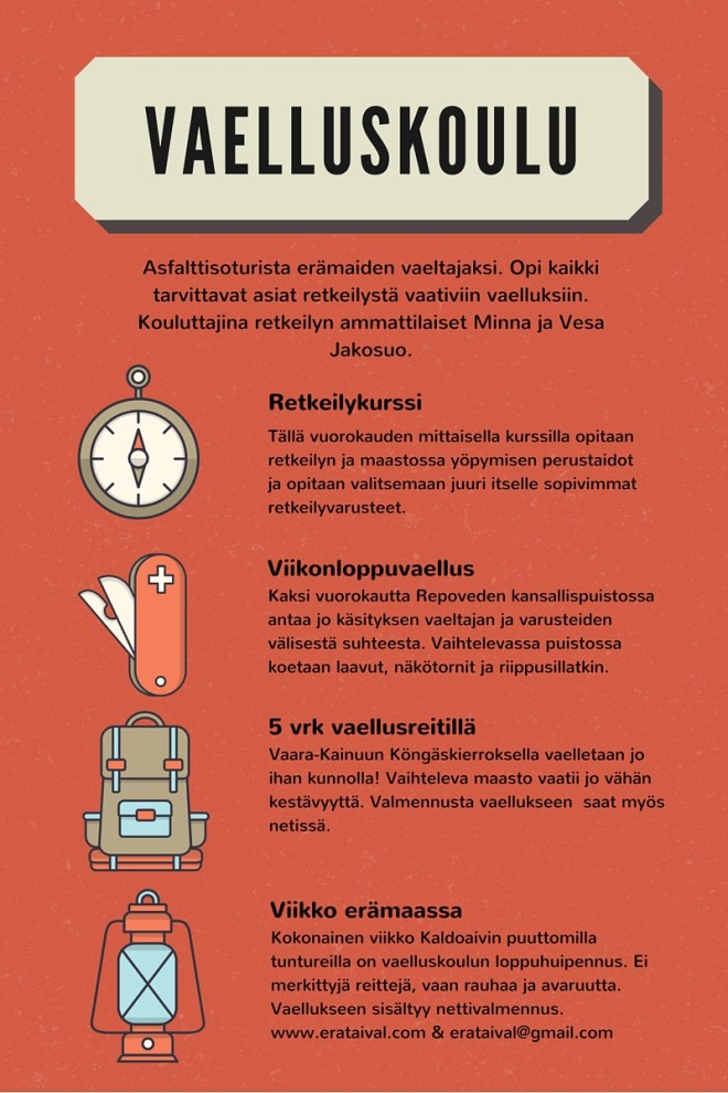 Nyt on uusi koulutuspaketti synnytetty ja valmiina maailmalle! Annamme opetusta retkeilyyn ja vaeltamiseen asteittain etenevässä järjestelmässä, jonka voi aloittaa täysin vailla aiempaa retkeilykokemusta.