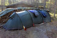 Heräsin kosteaan ja utuiseen aamuun. Teltan edessä oli kivistä tehty nuotiokehä ja liuskemaisista kivistä kyhätyt penkit. Nautin aamiaista kaikessa rauhassa… Lue lisää Aatun kammi – Junkers – seitakivi – Vetsijoki (5)