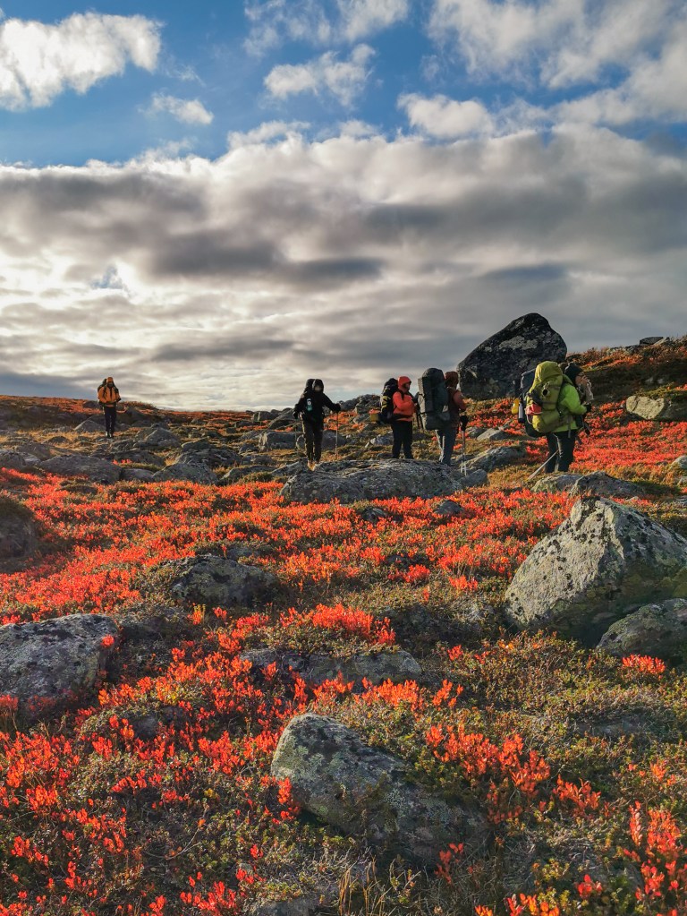 Tänne voit tulla, vaikka et olisi konkarivaeltaja. Ihaillaan ruskaisia maisemia Muotkatunturin erämaan pohjoisosissa. Pääset harjoittelemaan jokien ylityksiä ja avotunturissa telttailua turvallisissa käsissä. Vaelluspäivät ovat säännöllisine taukoineen leppoisia ja päivämatkat hillittyjä. Maasto on melko helppokulkuista.