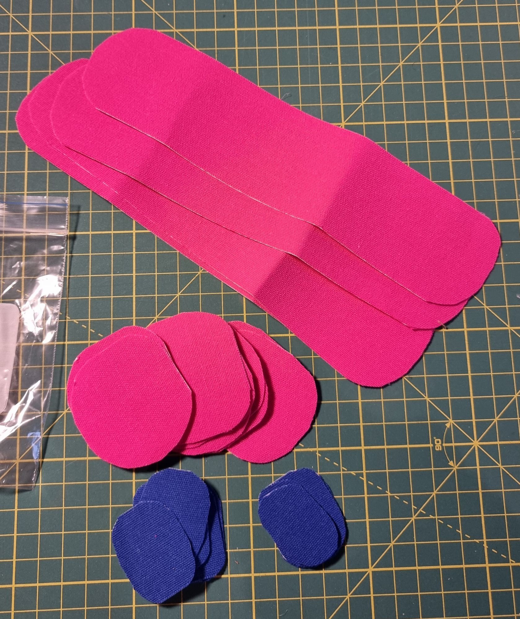 -Valmiiksi leikattuja, pyöristetyillä kulmilla olevia paloja kinesioteippiä (suojaamaan pakkasenpuremilta kasvoissa)